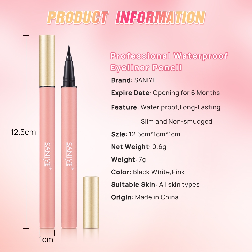 SANIYE ซานี 3 สีอายไลเนอร์บางพิเศษสีดําสีขาวสีชมพูอายไลเนอร์ชนิดน้ําแห้งเร็วยาวนานตาแต่งหน้า ม418 / ม438