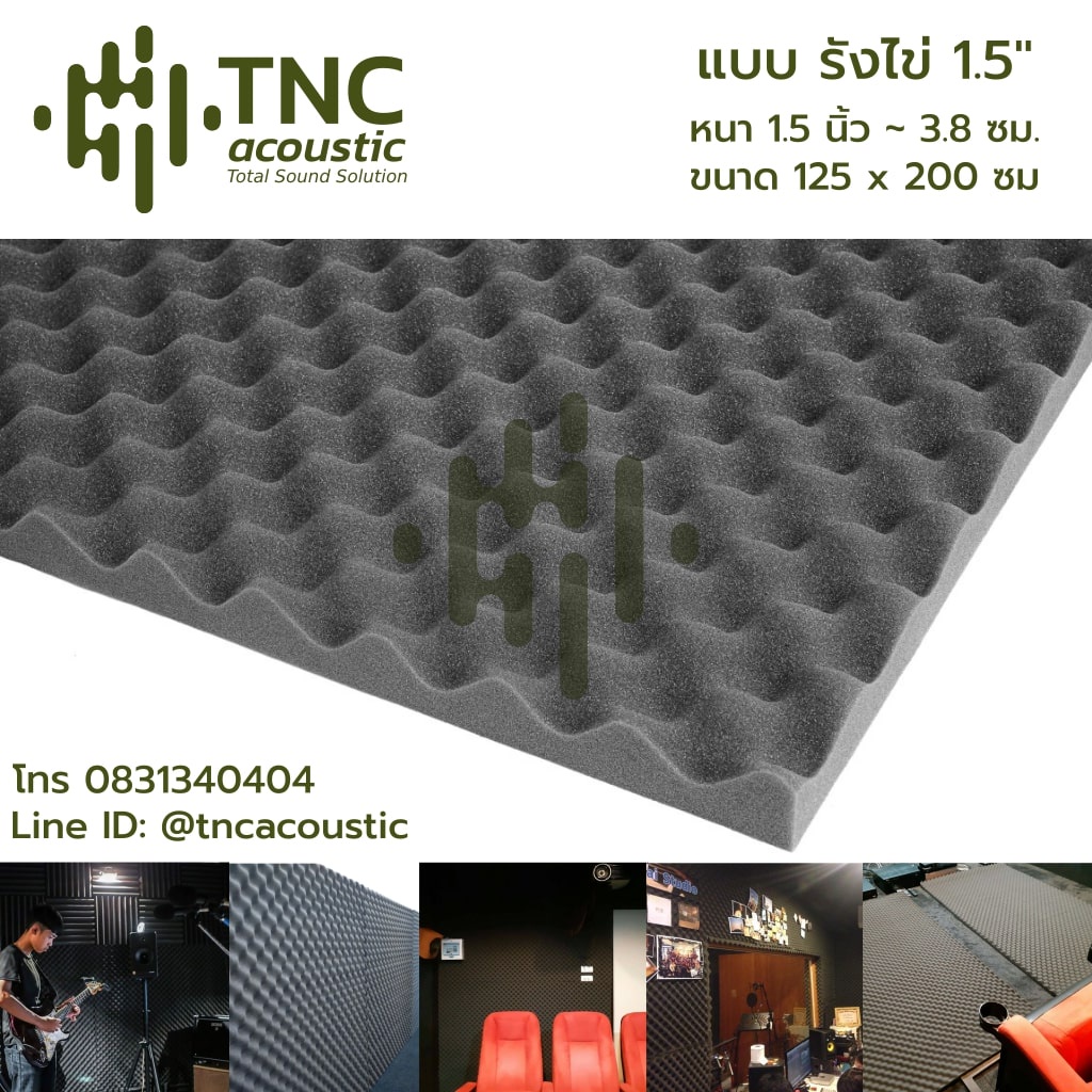 (ผลิตไทย) แผ่นซับเสียง **ไม่ลามไฟ ** ใหญ่ 125x200 ซม. หนา 1-2 นิ้ว (จาก TNC Acoustic)