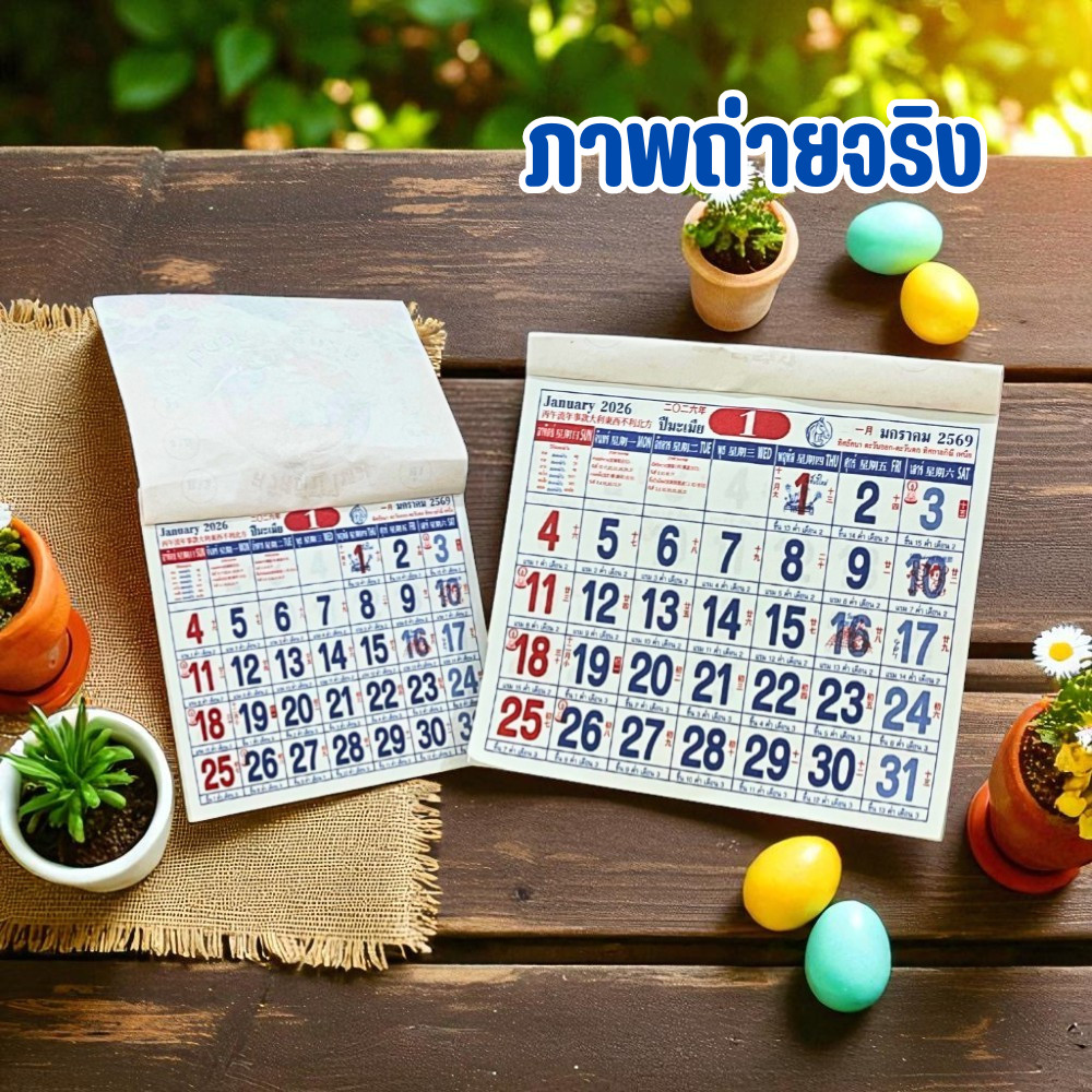 ปฏิทินตั้งโต๊ะ 2569 Calendar 2026 ขนาดเล็ก 12x12.5 ซม. ปฏิทินตั้งโต๊ะ ฉีกวัน พร้อมวันมงคล สีสดชัดเจน