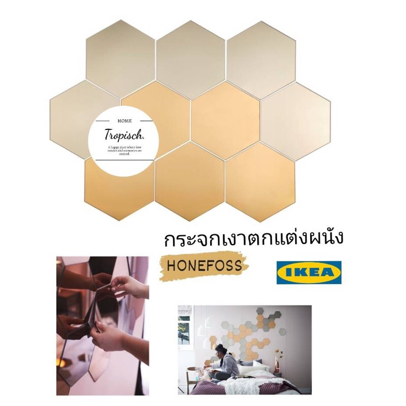 กระจกเงา ทรงหกเหลี่ยม IKEA กระจกเงา 10 ชิ้น ✨HONEFOSS ✨ เฮอเนฟอส🌈 ของแท้ 💯พร้อมส่ง 🛒 กระจกเงาติดผนัง ของแต่งบ้านนอร์ดิก
