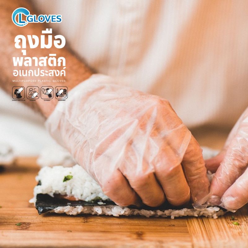 (แบบกล่อง) ถุงมือพลาสติก แบบใช้แล้วทิ้ง 1 กล่อง 200 ชิ้น ถุงมือพลาสติกใส สำหรับทำอาหาร