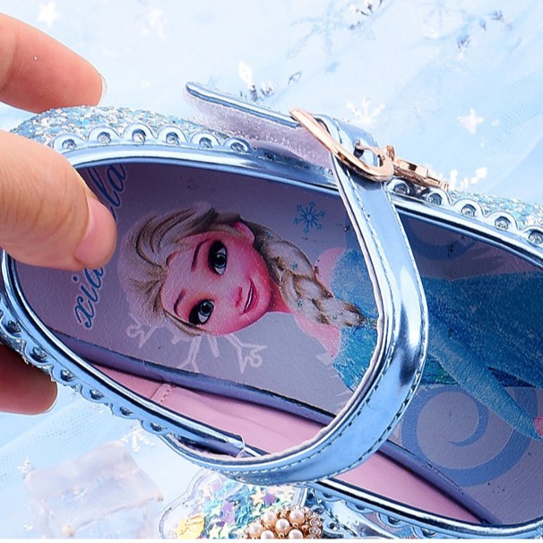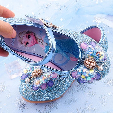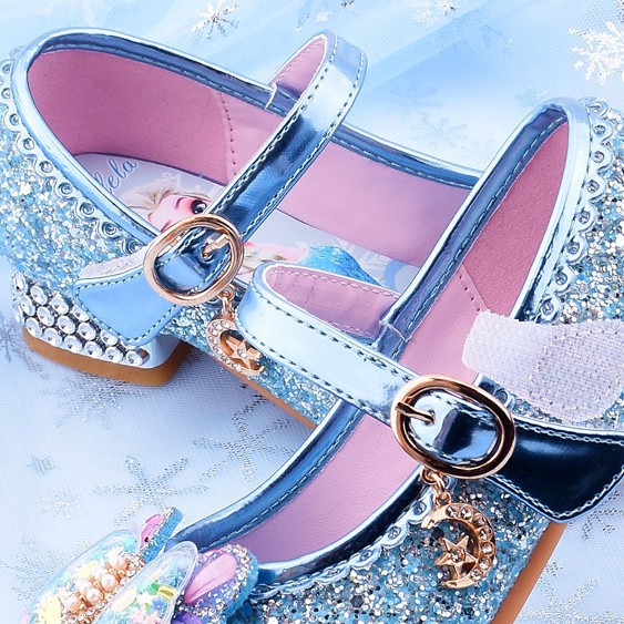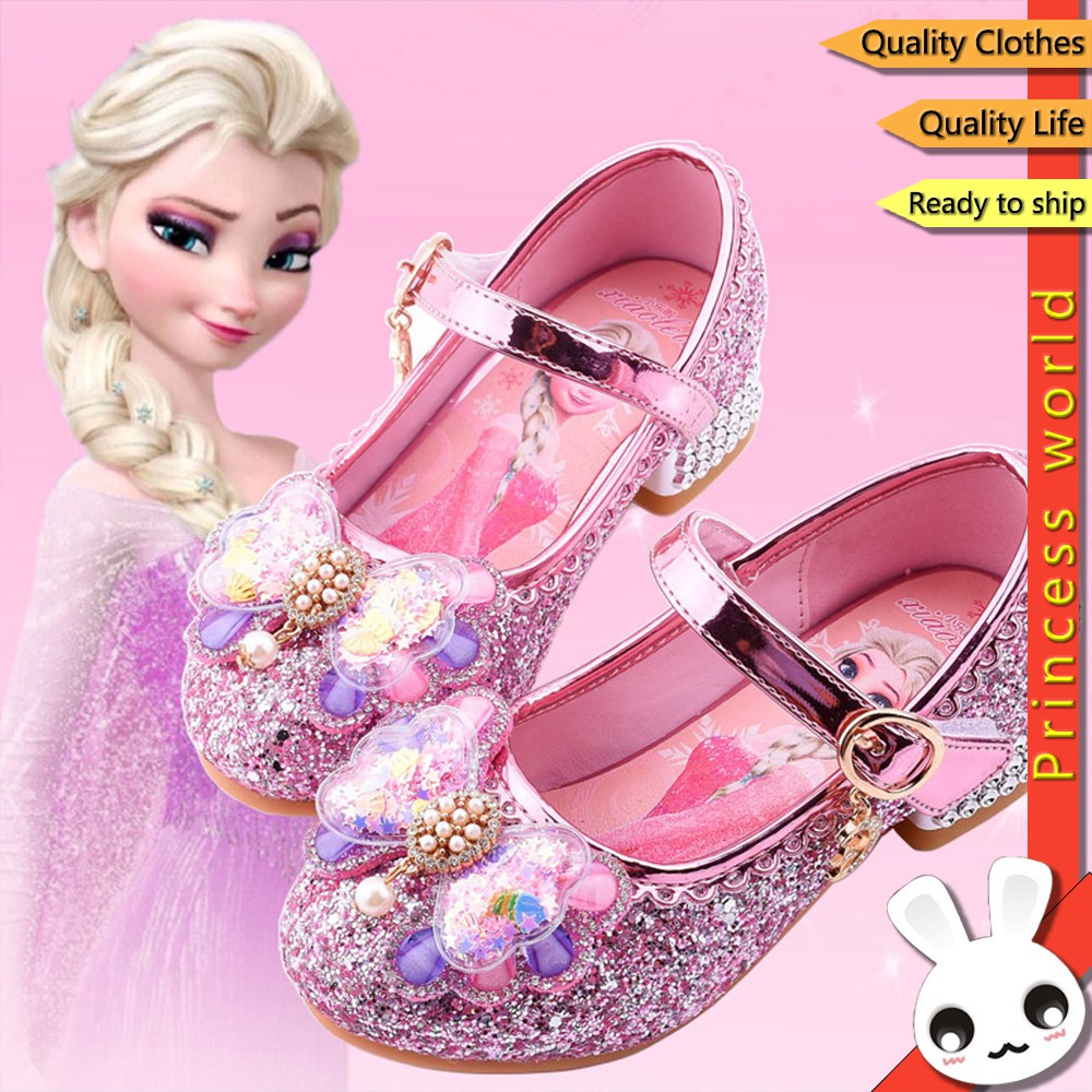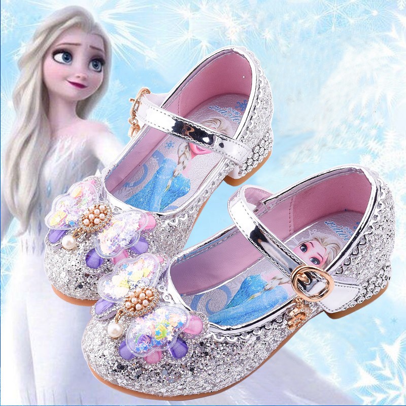 รองเท้าเจ้าหญิงเด็ก Frozen Elsa รองเท้าแฟชั่นเด็กผู้หญิงหนังรองเท้าส้นสูงด้านล่างนุ่มรองเท้าคริสตัล Kasut kanak-kanak