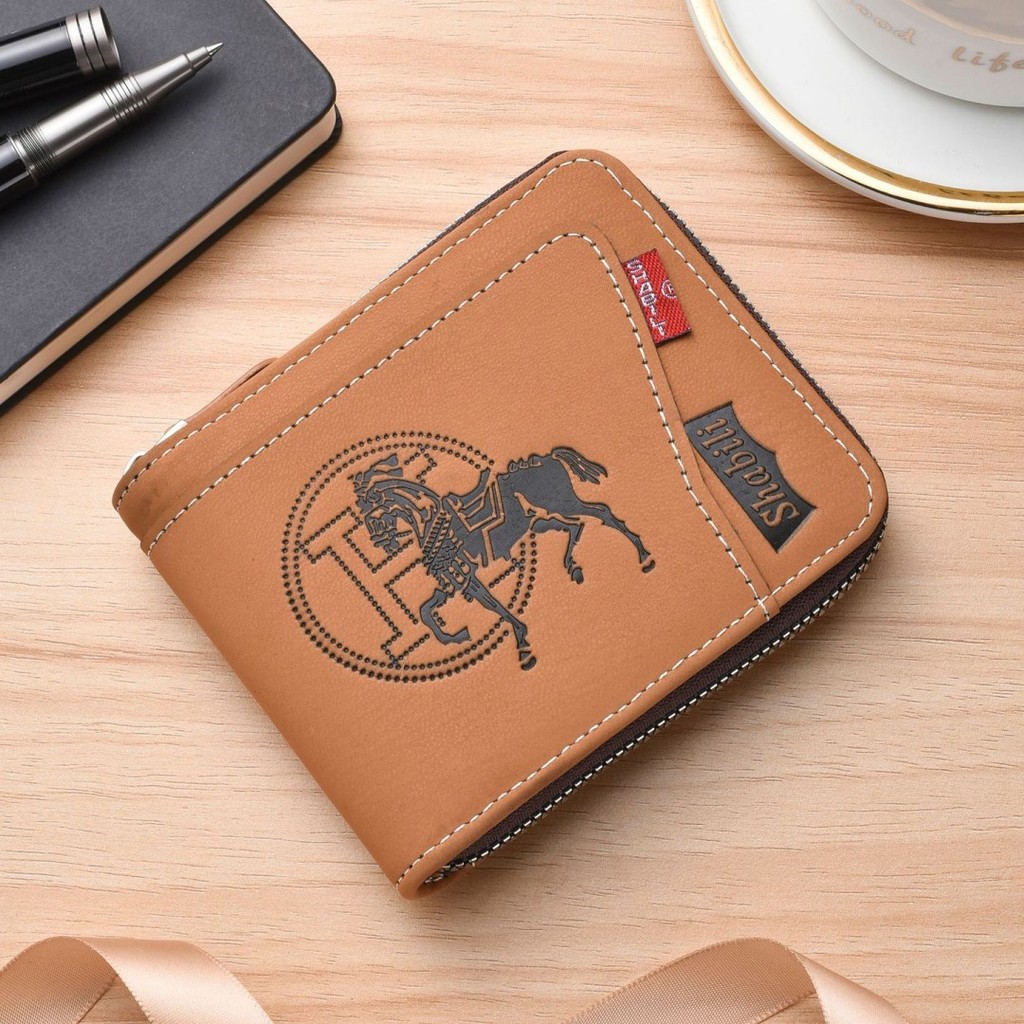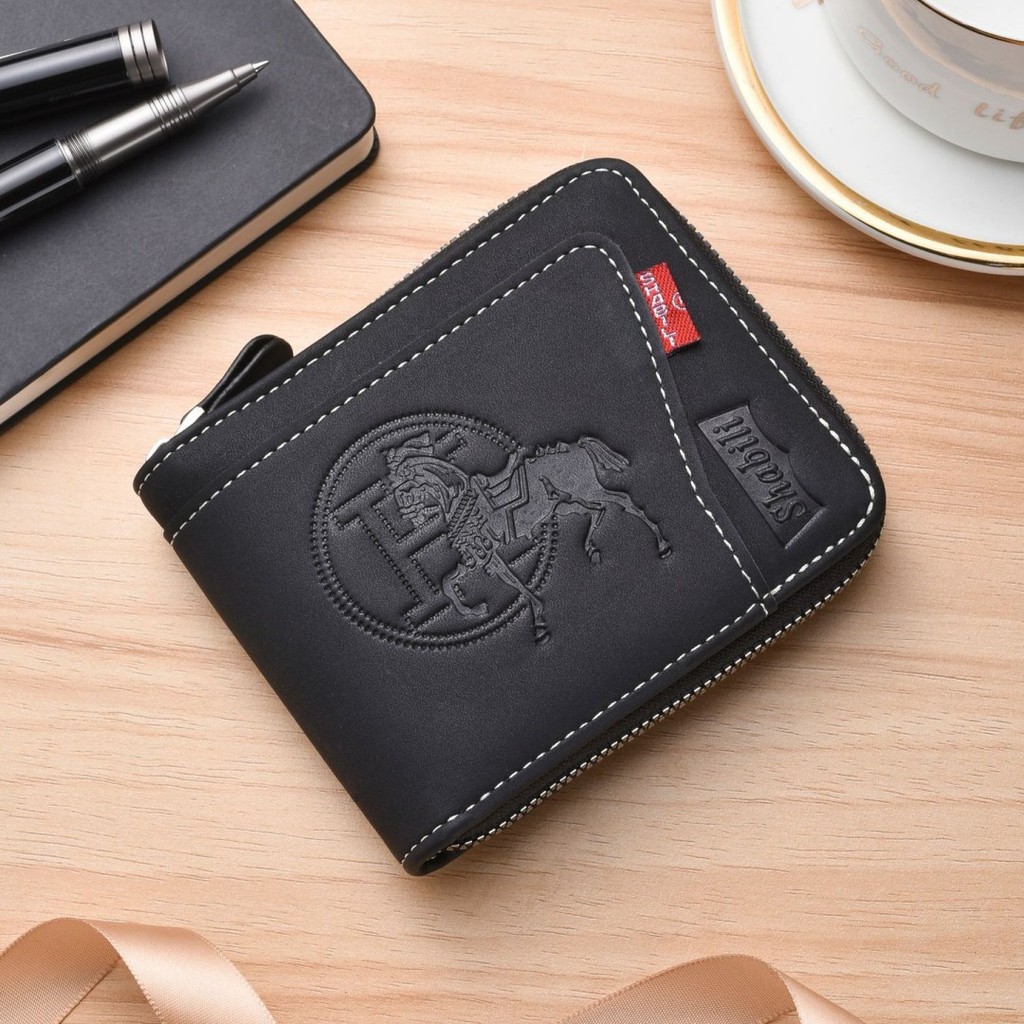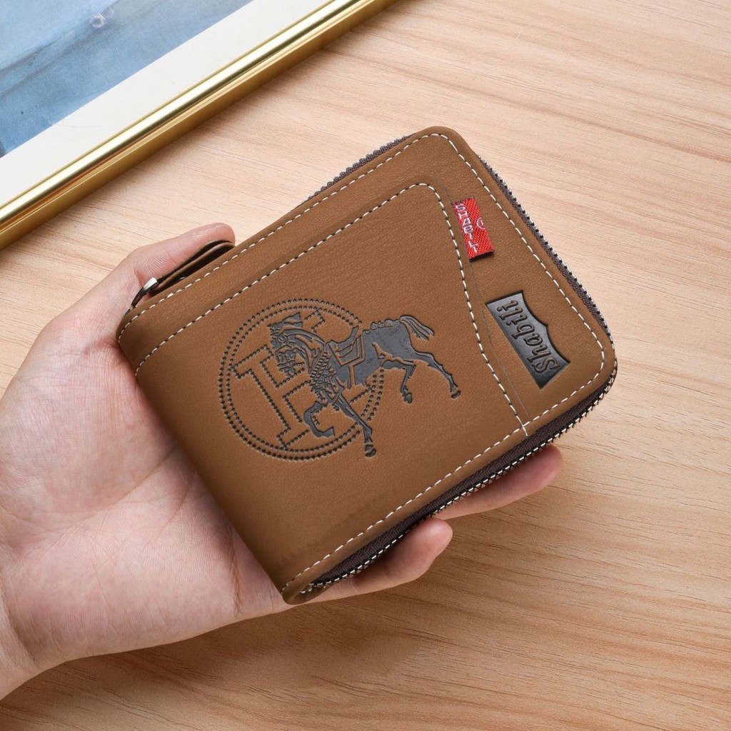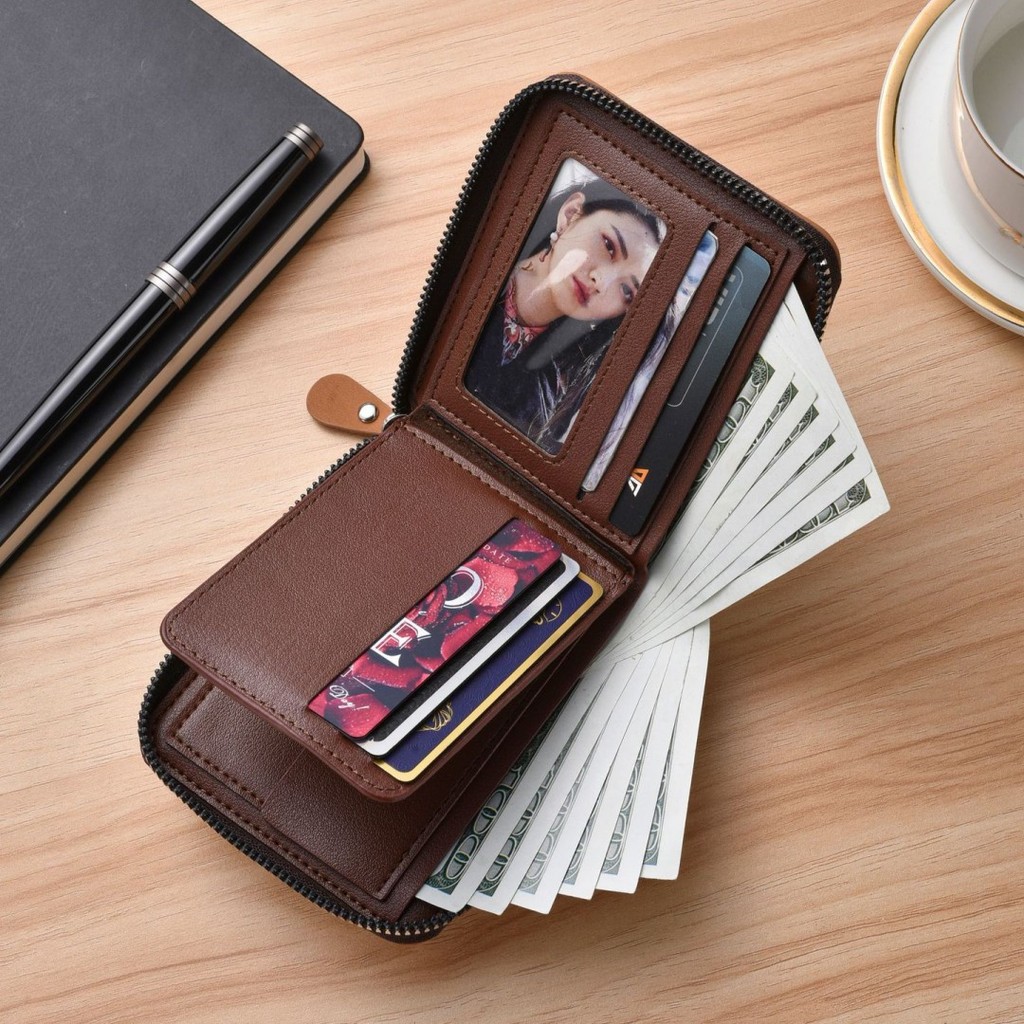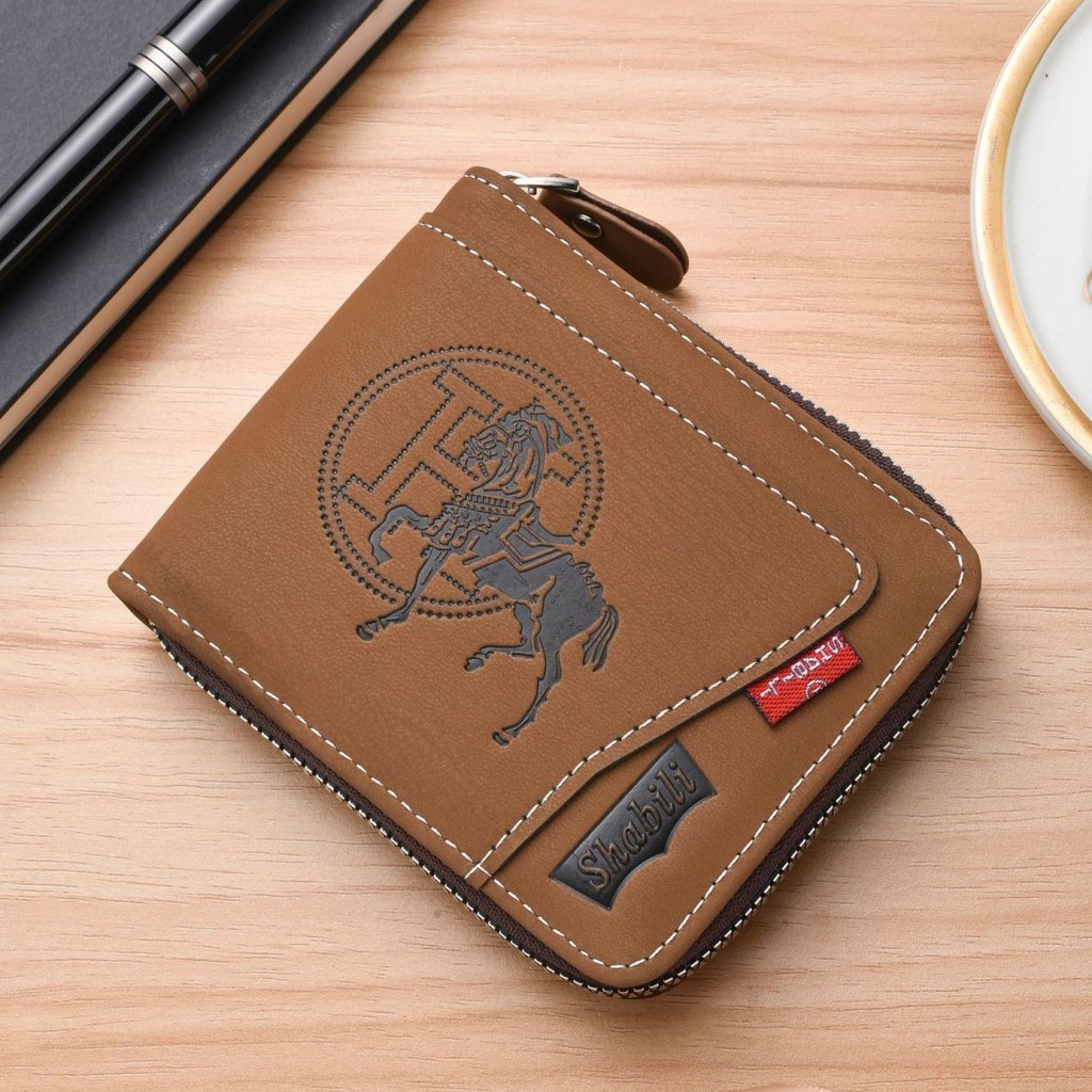 กระเป๋าสตางค์ใบสั้นผู้ชายมัลติฟังก์ชั่หลายบัตรกรณีพับความจุขนาดใหญ่ซิปกระเป๋าสตางค์
