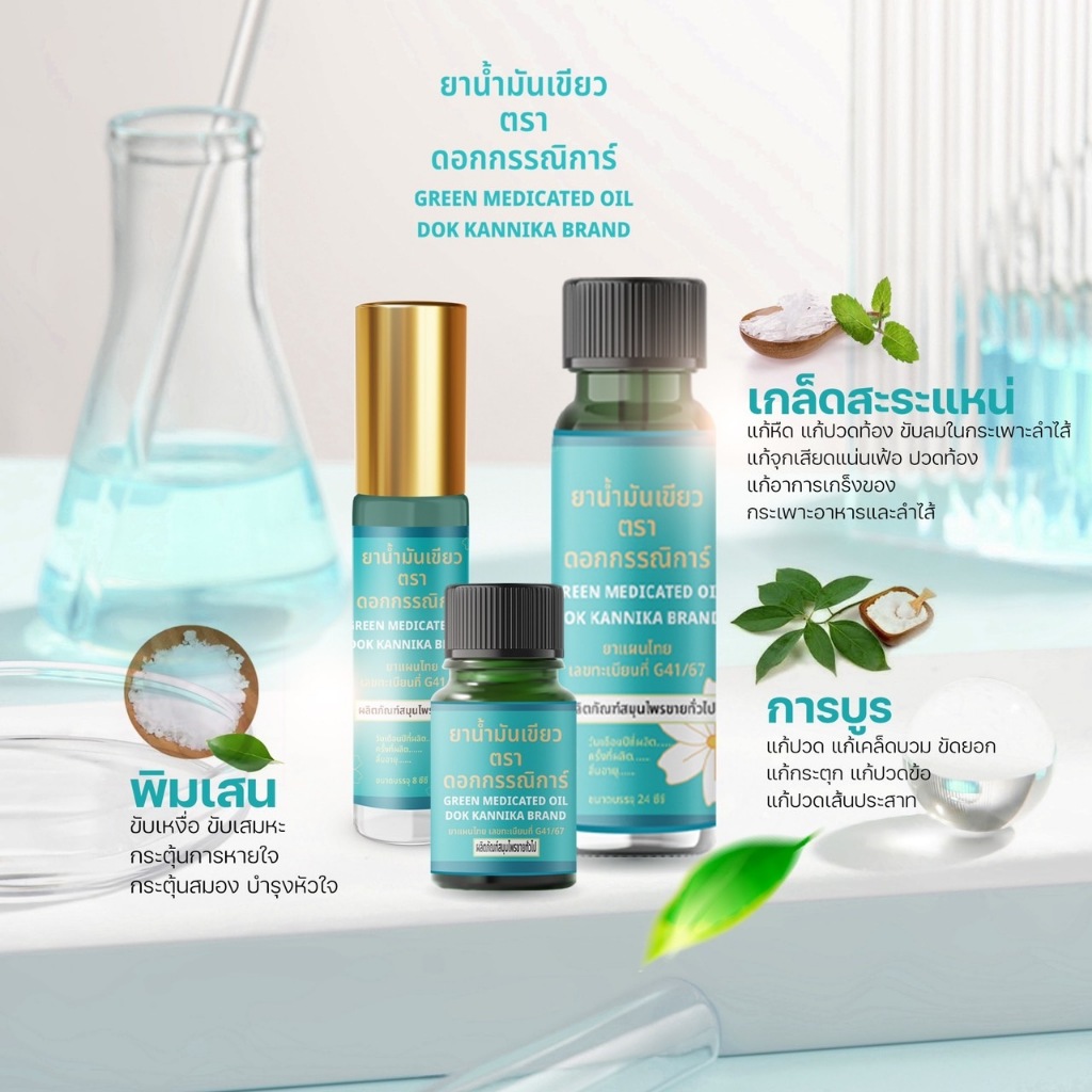 (เซททดลอง) น้ำมันเขียวตราดอกรรณิการ์ 3 ขนาด จัดส่งฟรี (กลิ่นดั้งเดิมของแท้ 100%)