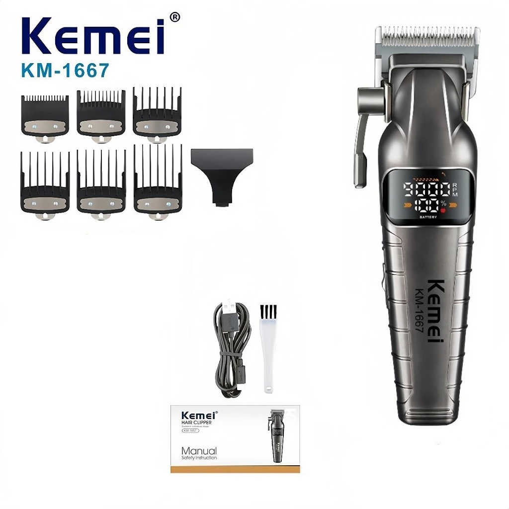Kemei 1667 Professional Hair Clipper 9000RPM ผมไฟฟ้าตัดผมไร้สาย 10W SUPER FAST TORQUE ROTARY
