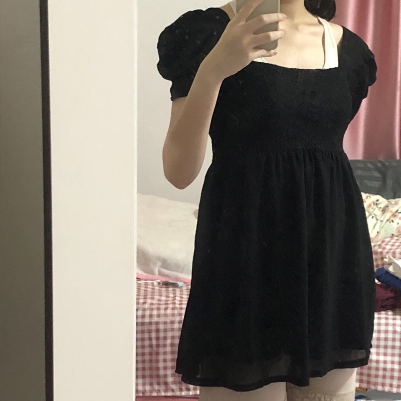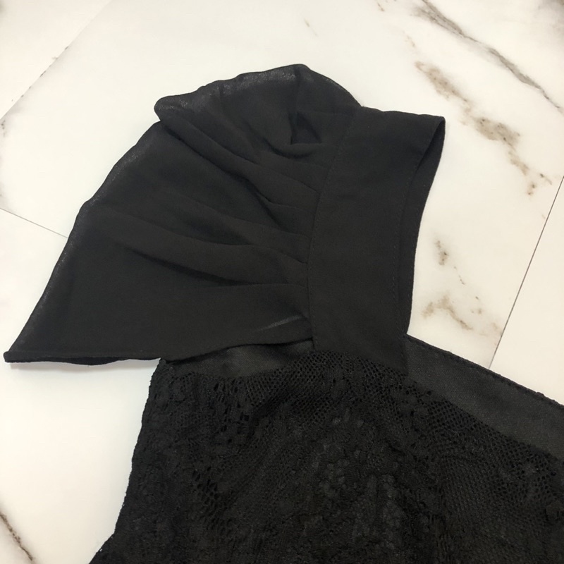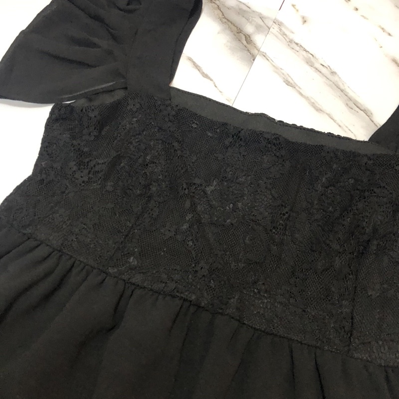 🐈⬛💋 มินิเดรสสีดำ แต่งผ้าตาข่ายลายดอกไม้