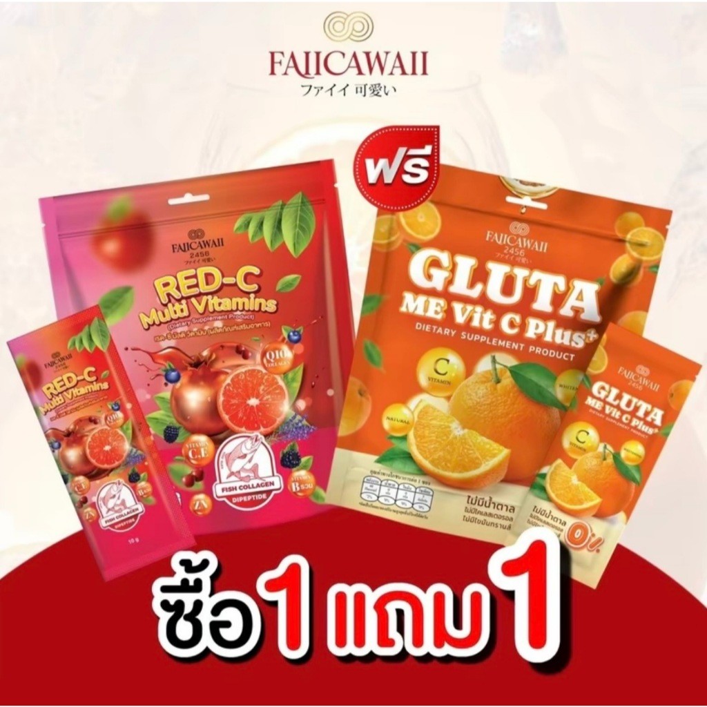 (1แถม1)Red-C เรด-ซี วิตามินซีแดงคอลลาเจน แถมฟรี กลูต้าวิตมินซีส้ม Gluta Me Vit C /2ถุง60ซอง