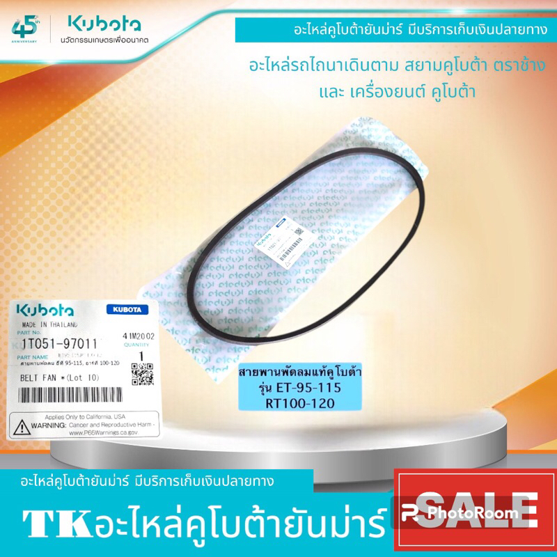 สายพานพัดลมสำหรับเครื่องยนต์คูโบต้ารุ่นETและRT