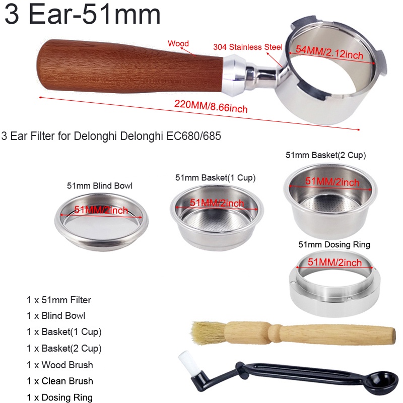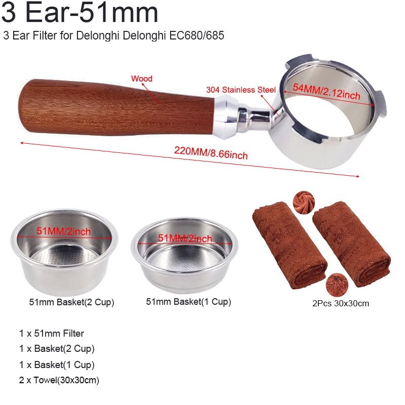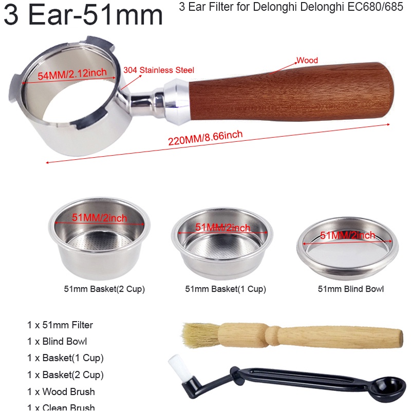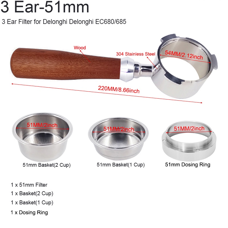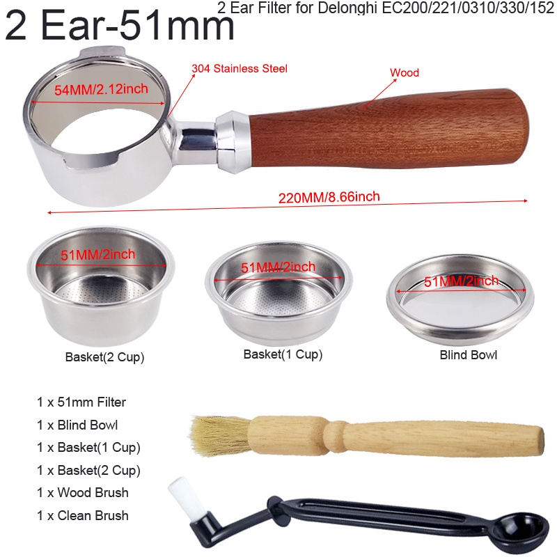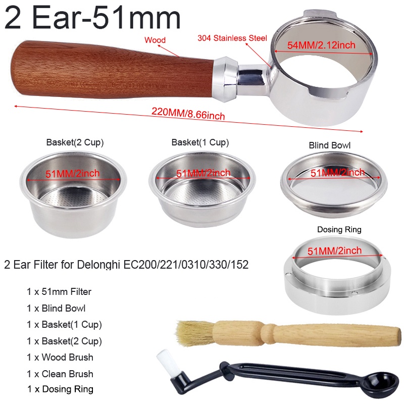 เครื่องชงกาแฟเอสเพรสโซ่ ไร้ก้น ขนาด 51 มม. พร้อมตะกร้า