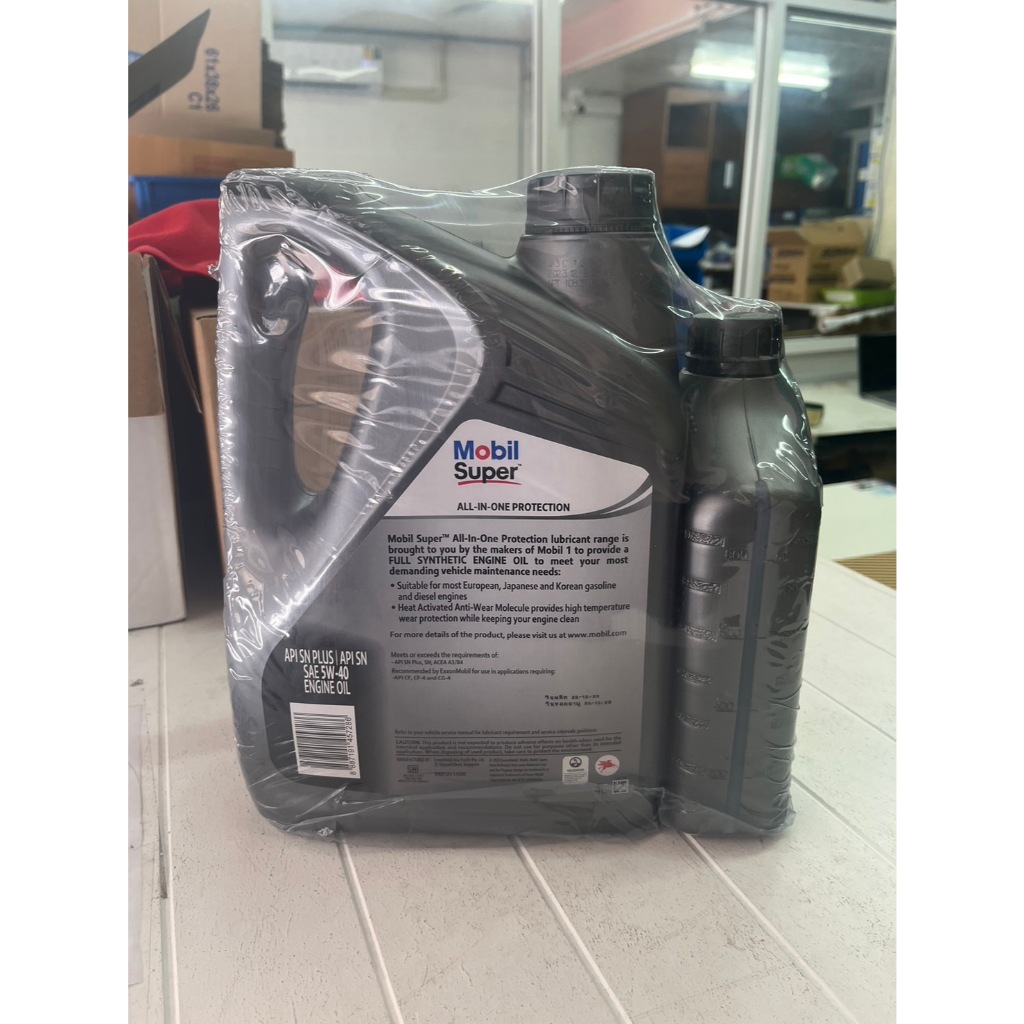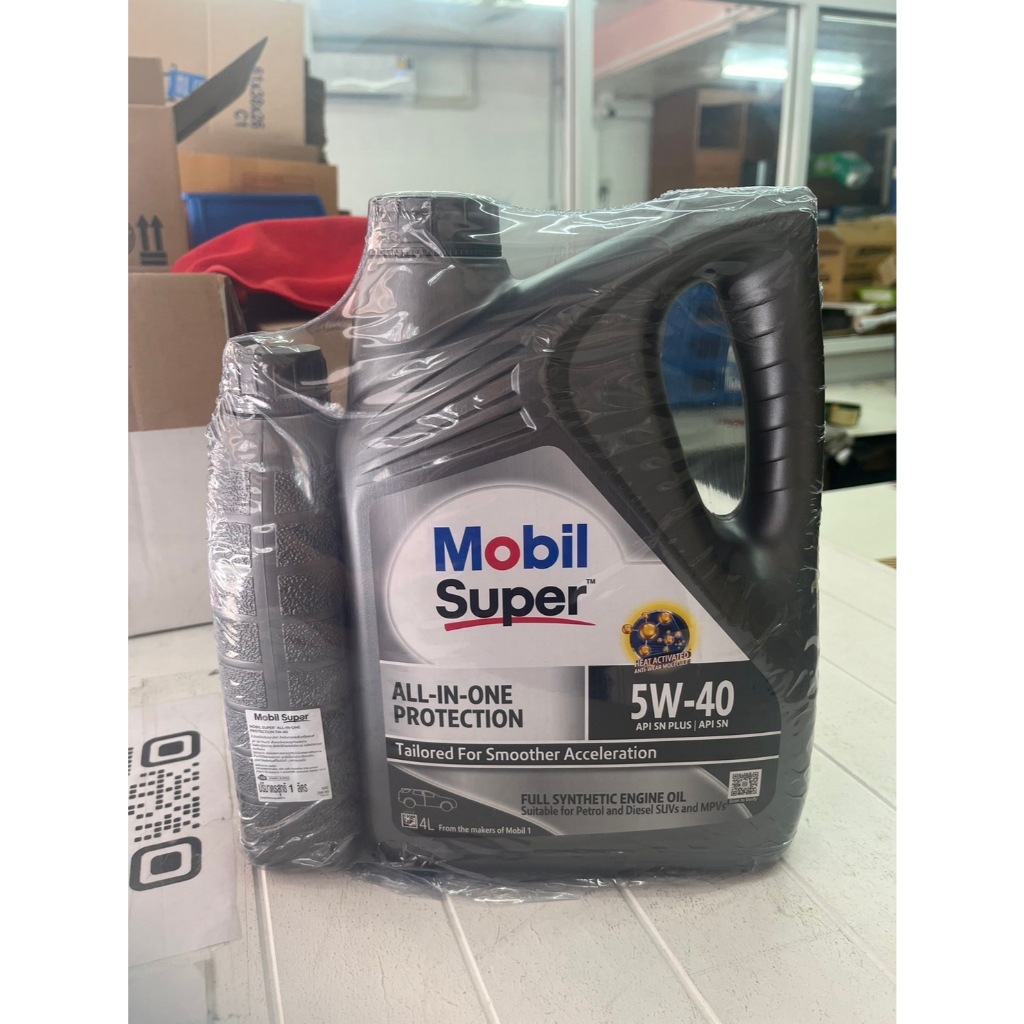 น้ำมันเบนซินเครื่องสังเคราะห์แท้ 100% Mobil Super™ All-In-One Protection 5W40 API SN Plus ขนาด 4+1 ลิตร (MOBIL5L5W40)