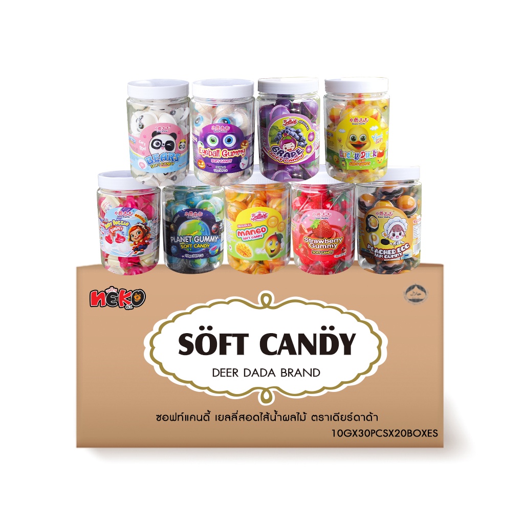 [ยกลัง 20กระปุก] (30 ลูก) Deer Dada ลูกอมเคี้ยวหนึบ ซอฟท์แคนดี้ เยลลี่สอดไส้กลิ่นต่างๆ ตราเดียร์ดาด้า [เลข อย.ทุกรส]