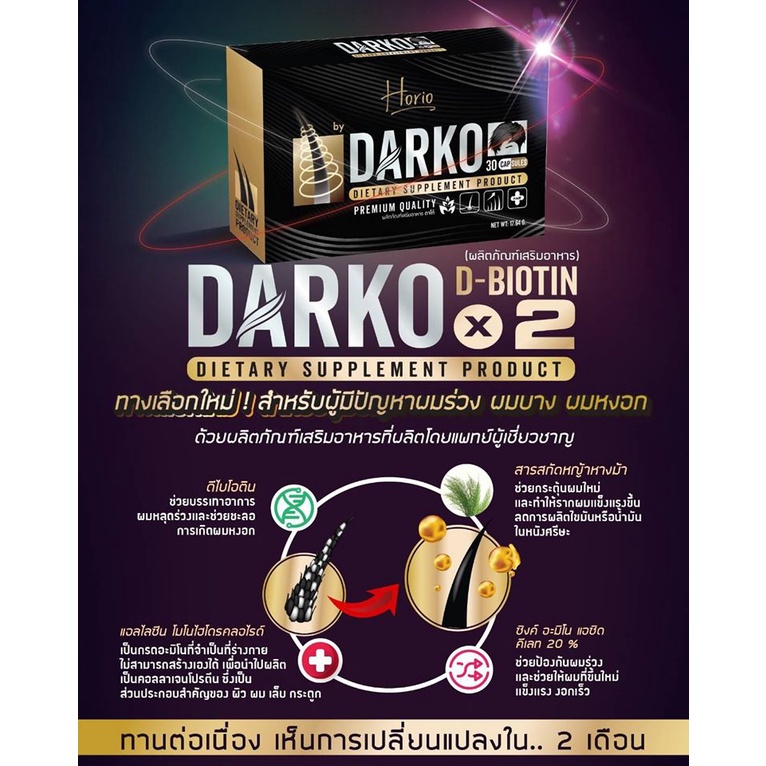 (7 กล่อง+) Horio Darko ดาโกะ (แท้ 100% ผลิต June 2568) บำรุงผม ปลูกผม ลดผมร่วง หัวล้าน ผมขาว ผมหงอก 2 เดือนได้ผล!