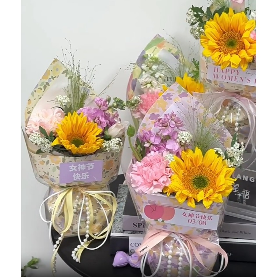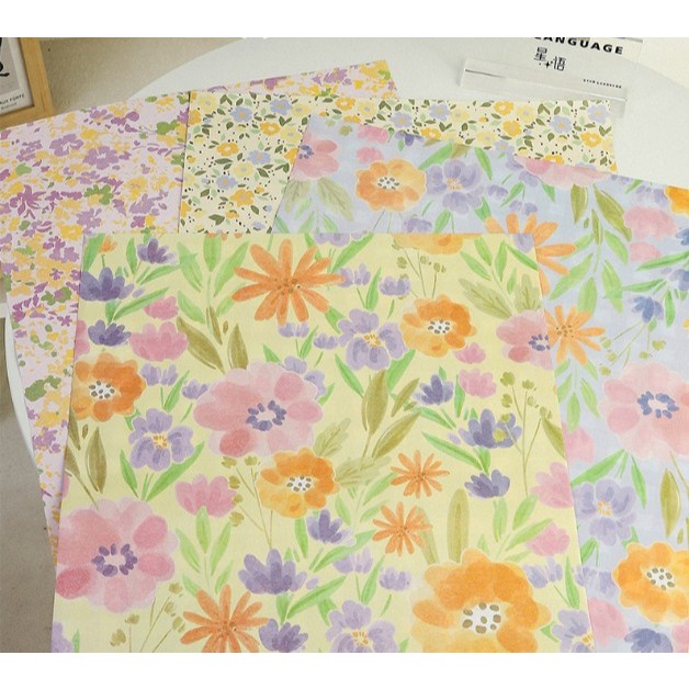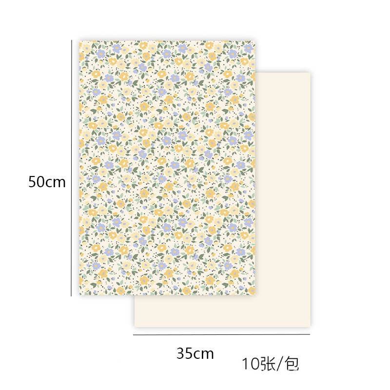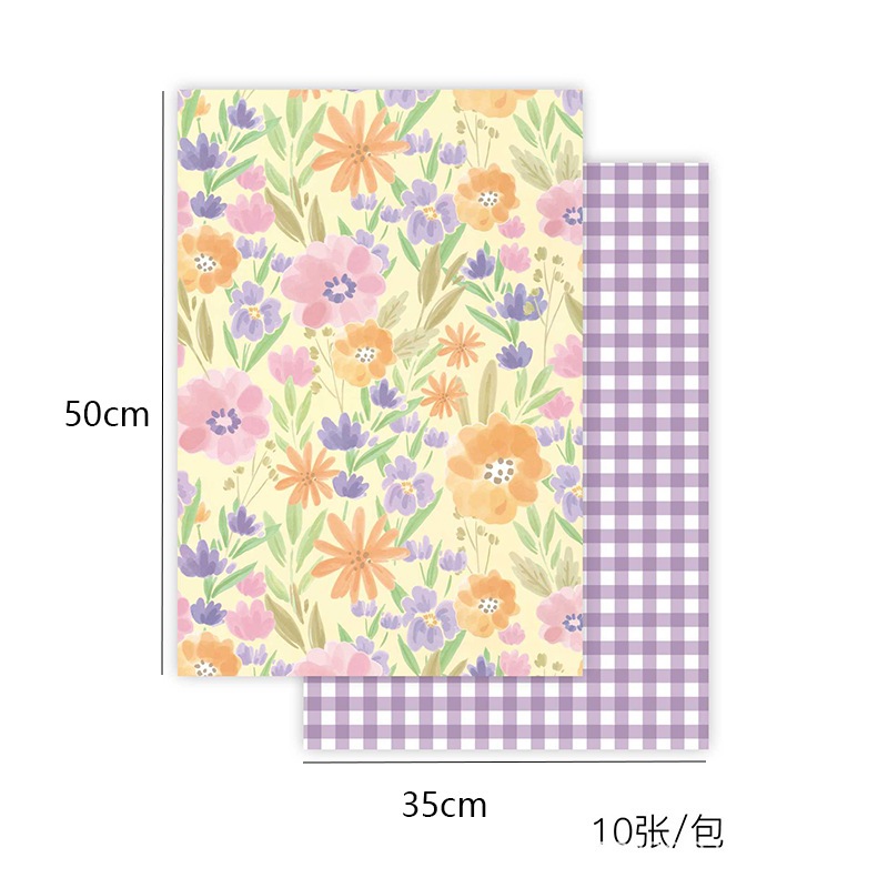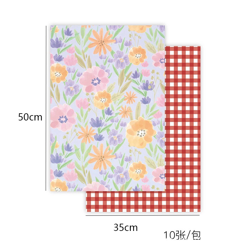[DELPH.STUDIO] ส่งจากไทย !! กระดาษห่อของขวัญ ลายดอกไม้หลังตาราง 35CM x 50CM 1 ห่อ 10 แผ่น