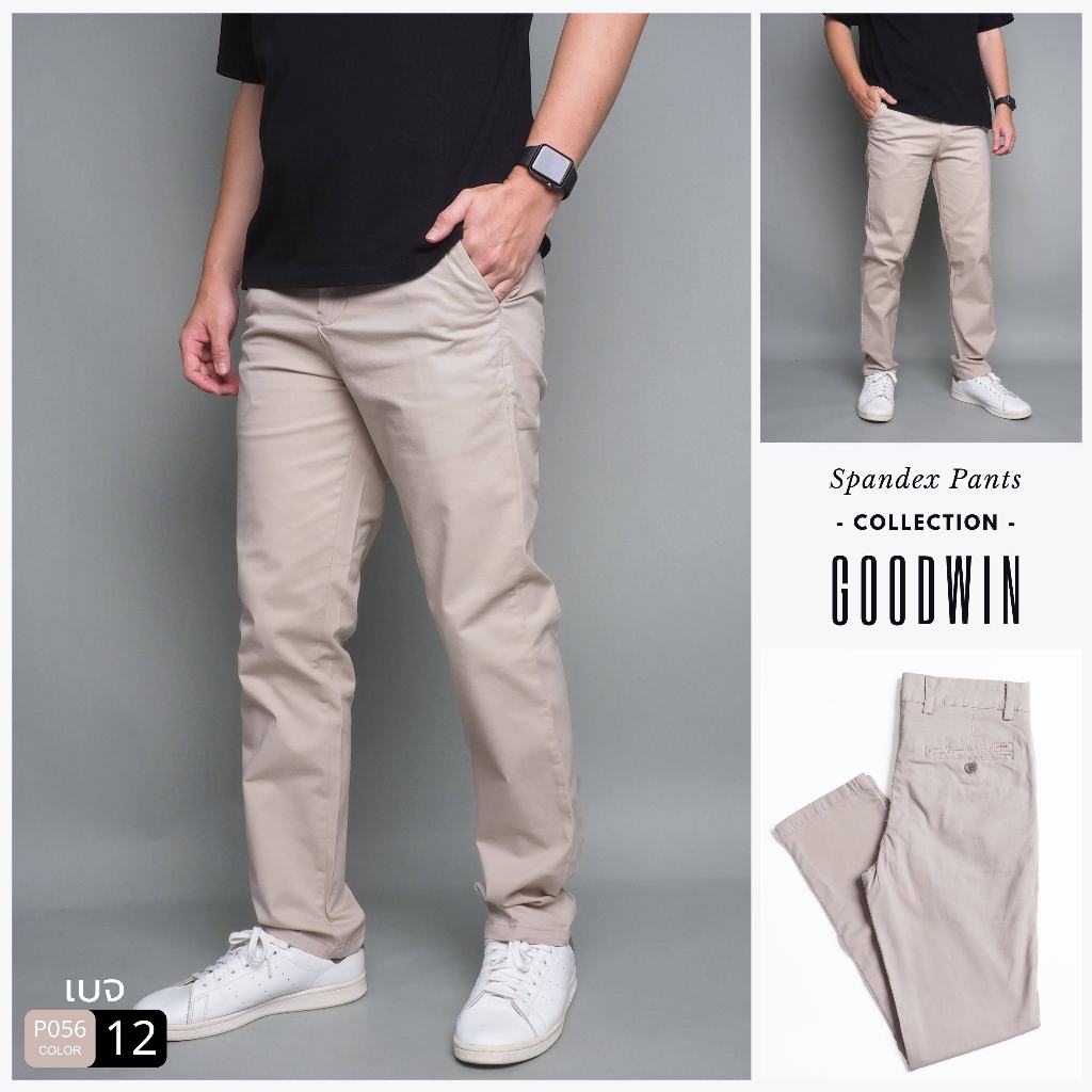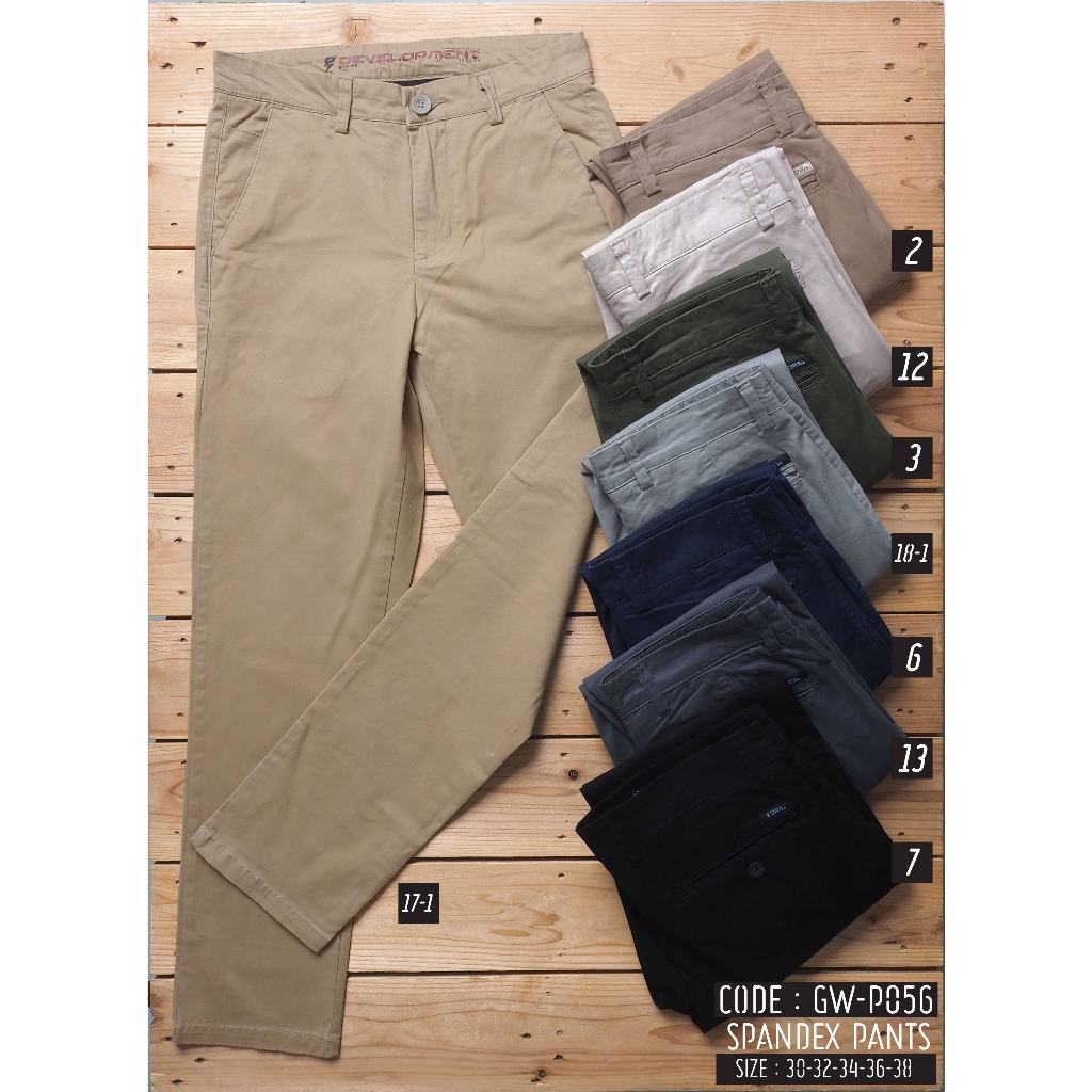 ⚡GW⚡P056 กางเกงขายาว ผู้ชาย ผ้ายืด สีพื้น Slim fit ยาว 38.5-40.5 นิ้ว ไซส์ 30-38