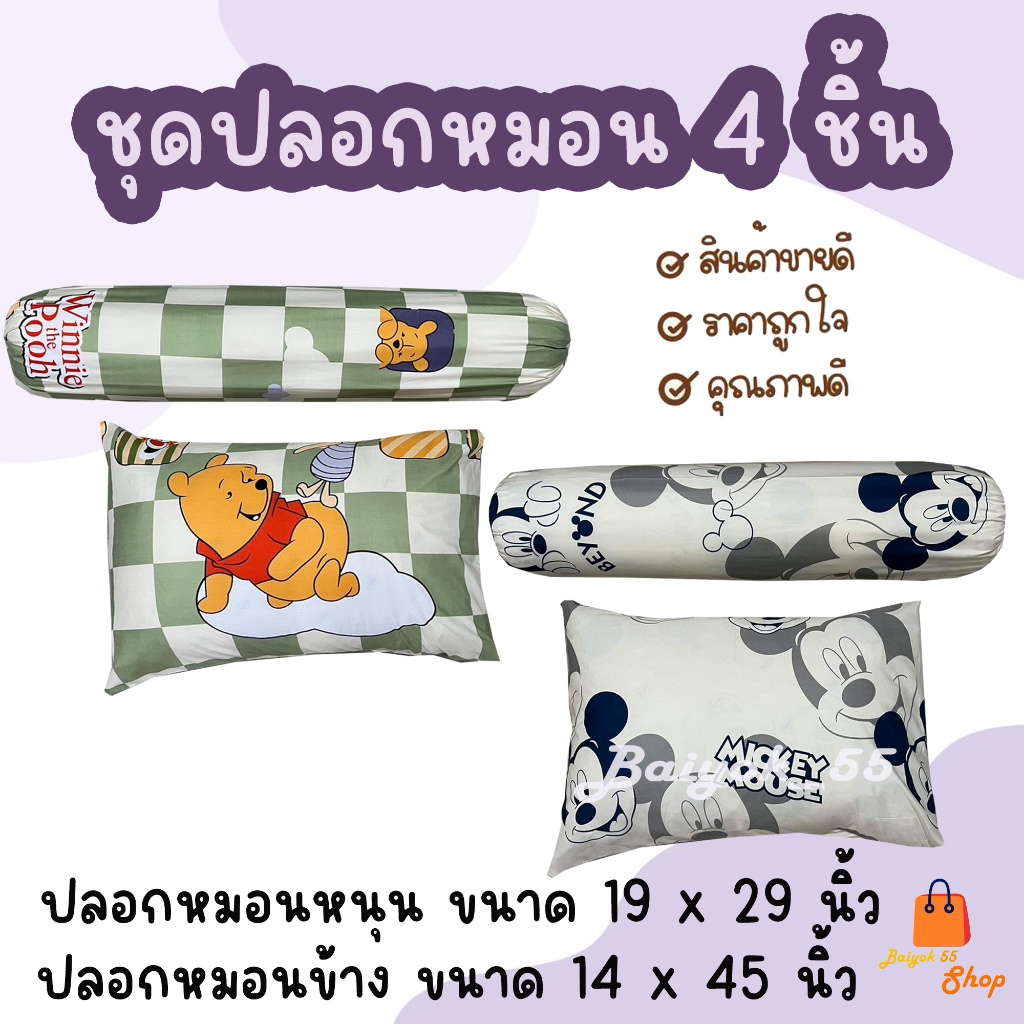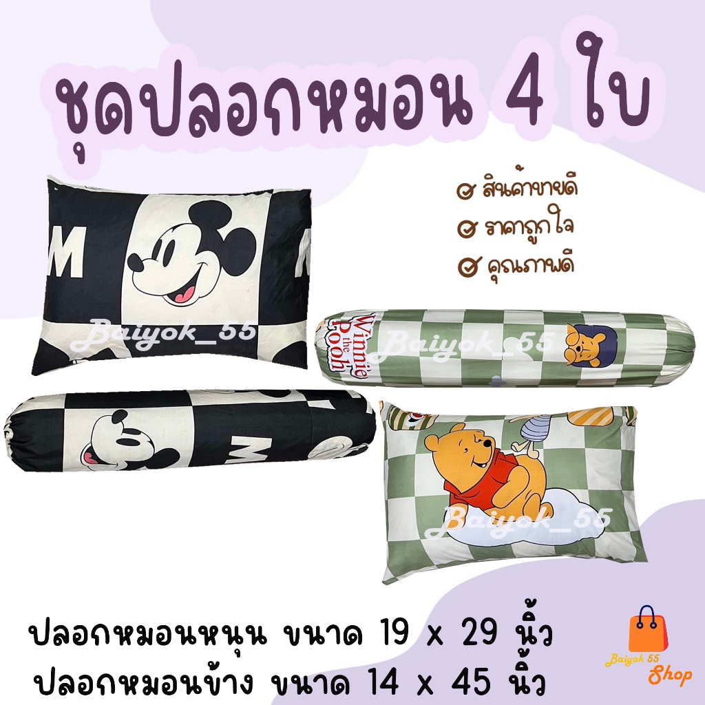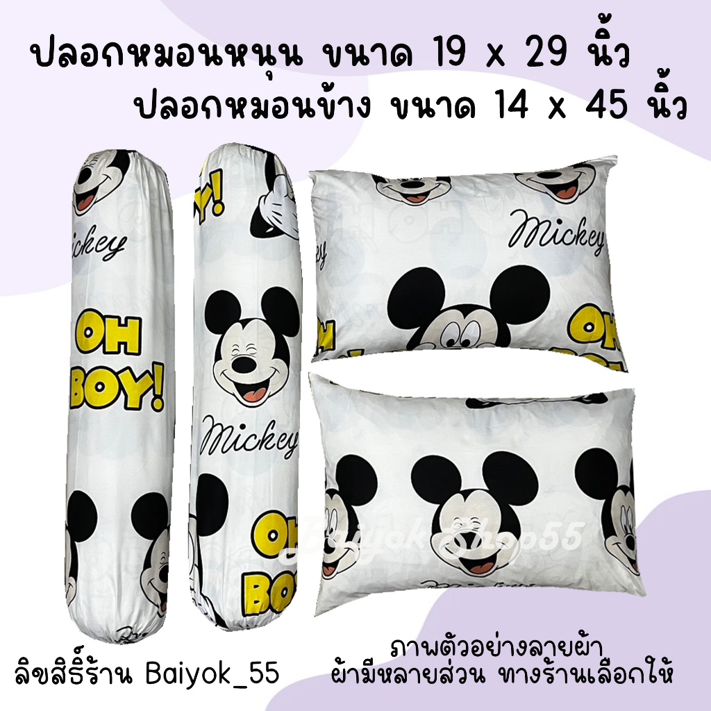 ปลอกหมอน / ปลอกหมอนข้าง ผ้าcotton 85% เนื้อผ้าคุณภาพดี ระบายอากาศดี มาตรฐานโรงแรม (น้องหมีและน้องมิกกี้)
