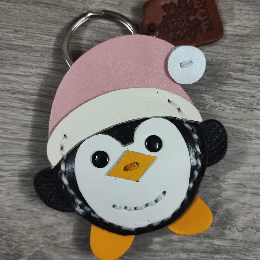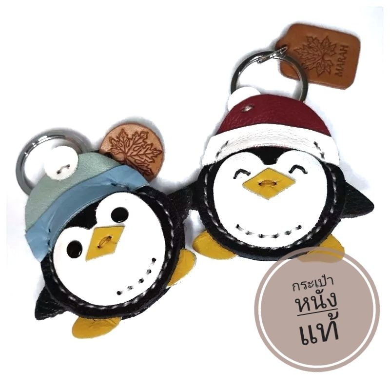 พวงกุญแจเพนกวิน พวงกุญแจหนังแท้ ปีใหม่ คริสต์มาส ทำจากหนังแท้ ห้อยกระเป๋าได้หรือใช้เป็นของชำร่วย