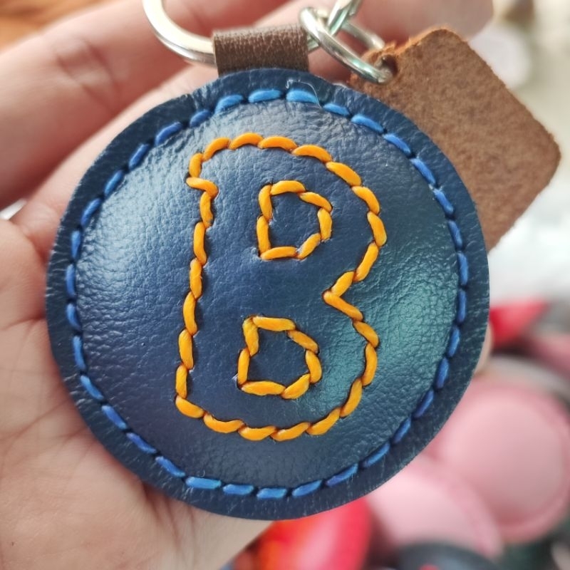 พวงกุญแจตัวอักษร ABC พวงกุญแจหนังแท้ ใช้ห้อยกุญแจ ห้อยกระเป๋า ทำจากหนังวัวแท้ 100 %