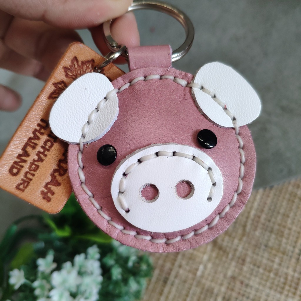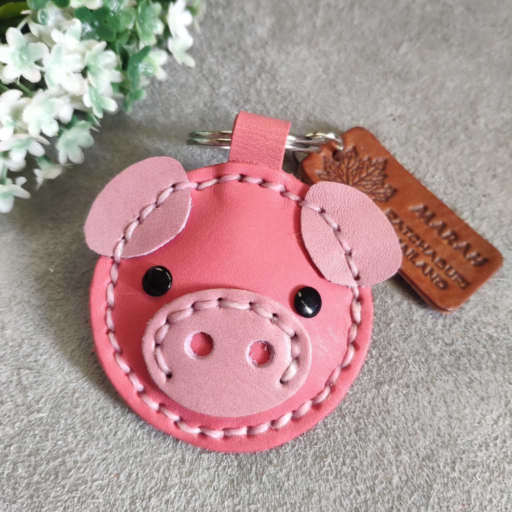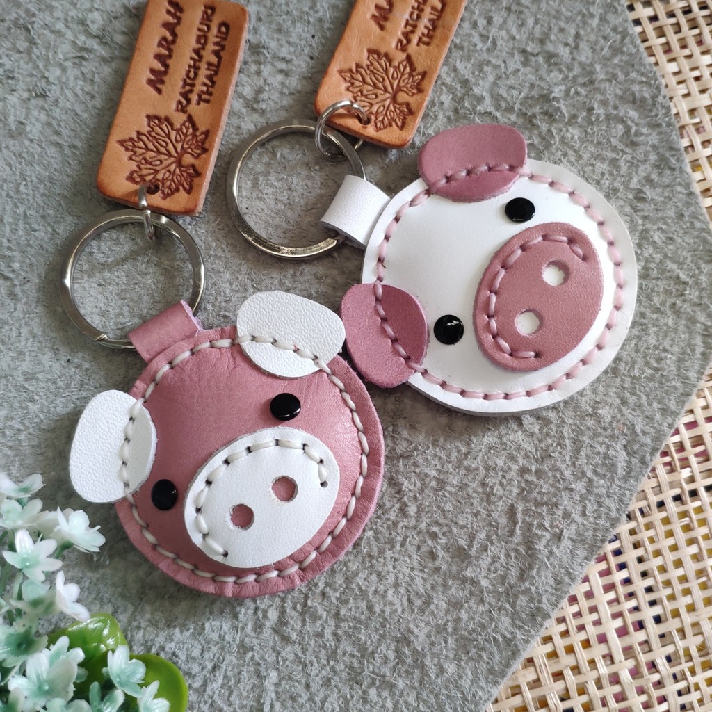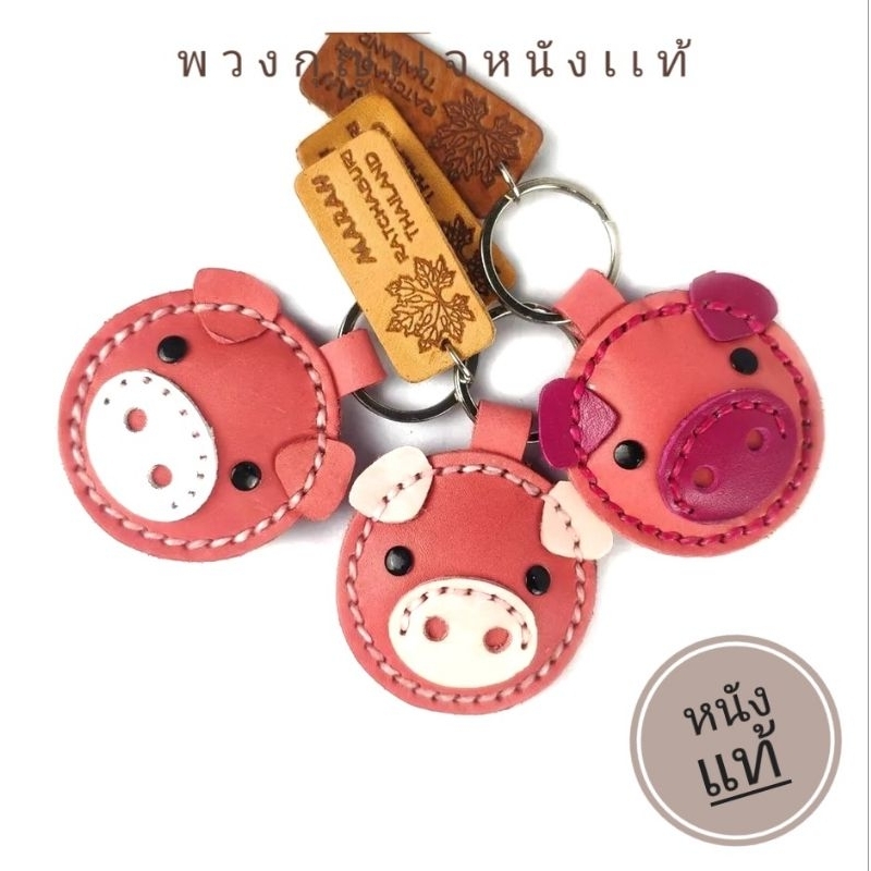 พวงกุญแจหมู ทำจากหนังแท้ ไม่ลอกไม่เปื่อย ห้อยลูกกุญแจ หรือจะนำไปห้อยกระเป๋าก็ได้