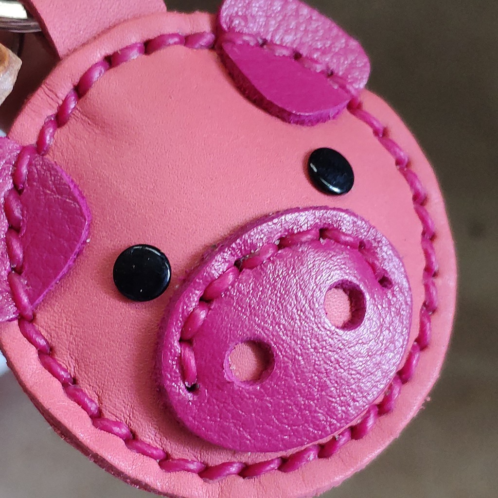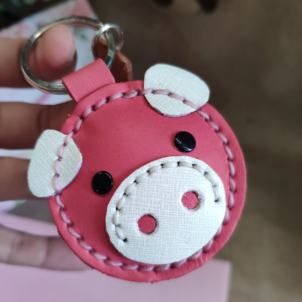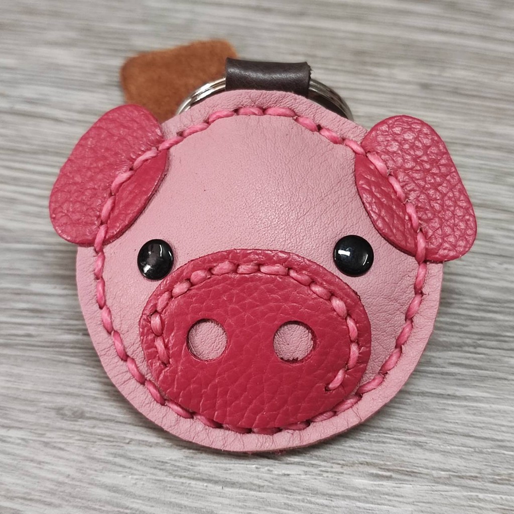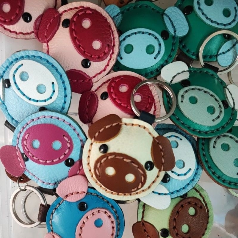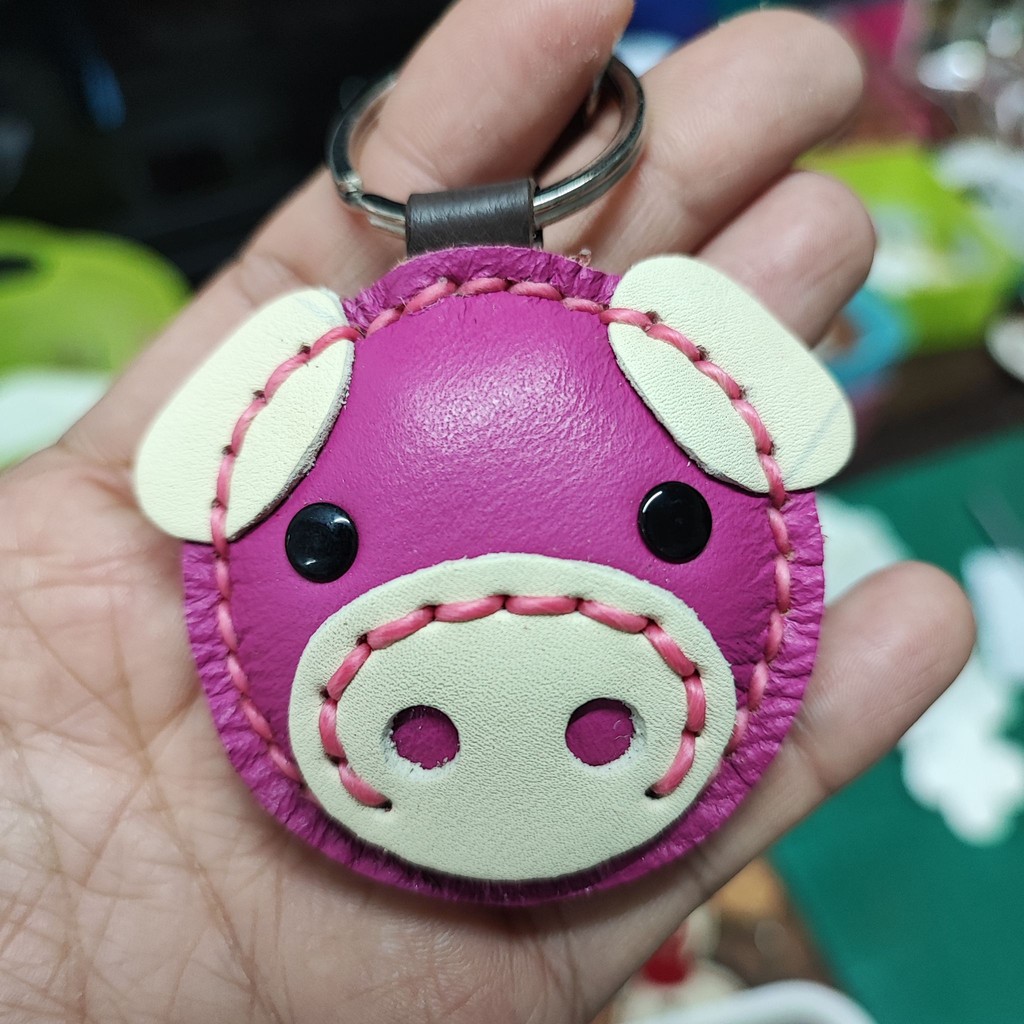 พวงกุญแจหมู ทำจากหนังแท้ ไม่ลอกไม่เปื่อย ห้อยลูกกุญแจ หรือจะนำไปห้อยกระเป๋าก็ได้