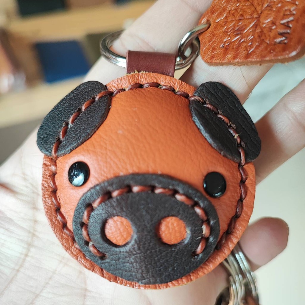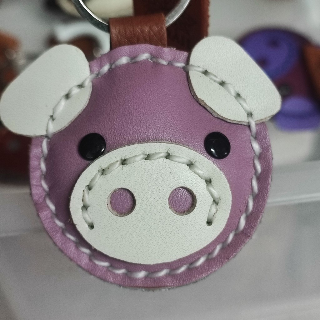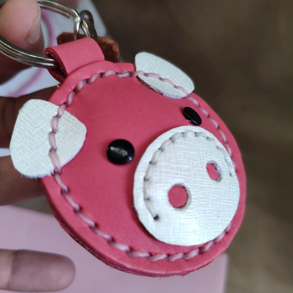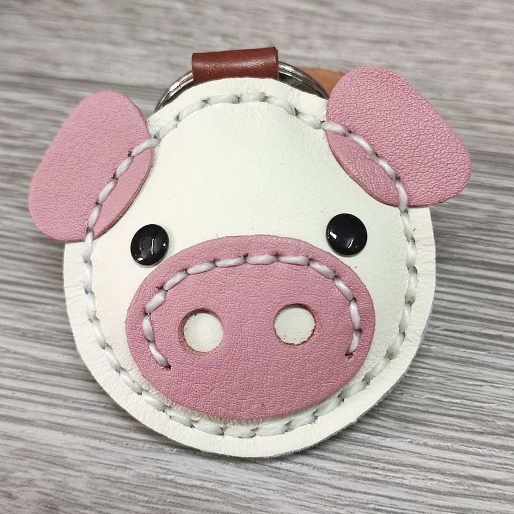 พวงกุญแจหมู ทำจากหนังแท้ ไม่ลอกไม่เปื่อย ห้อยลูกกุญแจ หรือจะนำไปห้อยกระเป๋าก็ได้