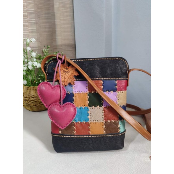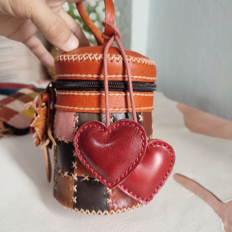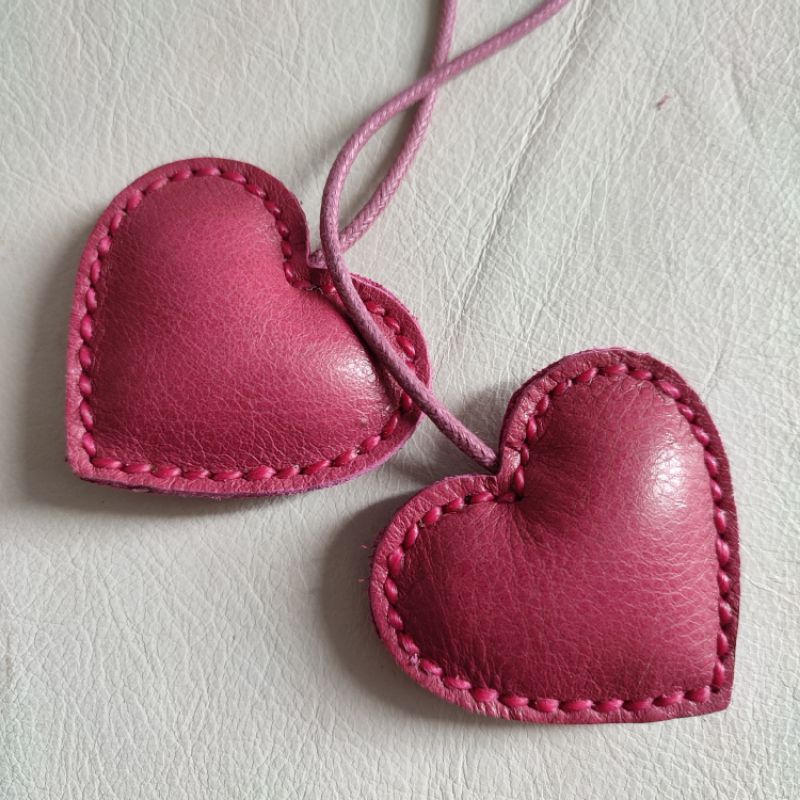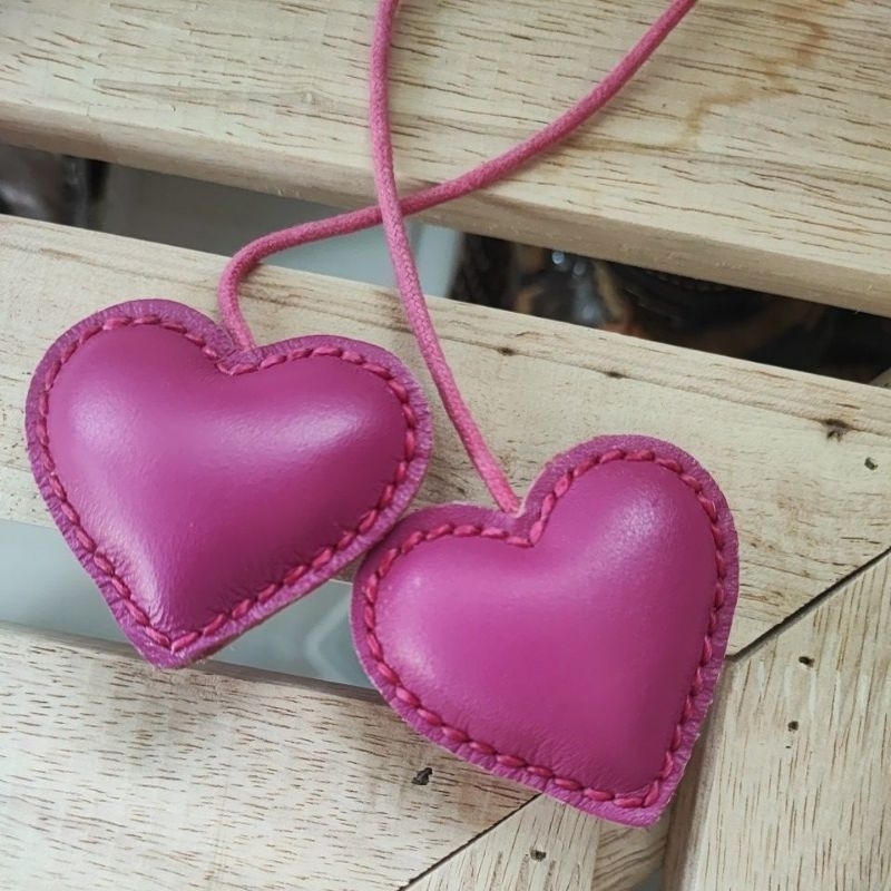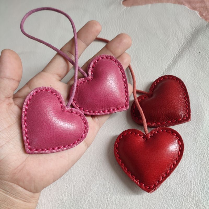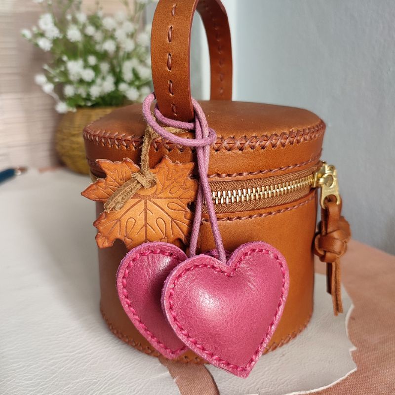 ที่ห้อยกระเป๋าหัวใจหนังแท้ น่ารัก สีไม่ลอกไม่หลุด หนังนิ่มน่าใช้