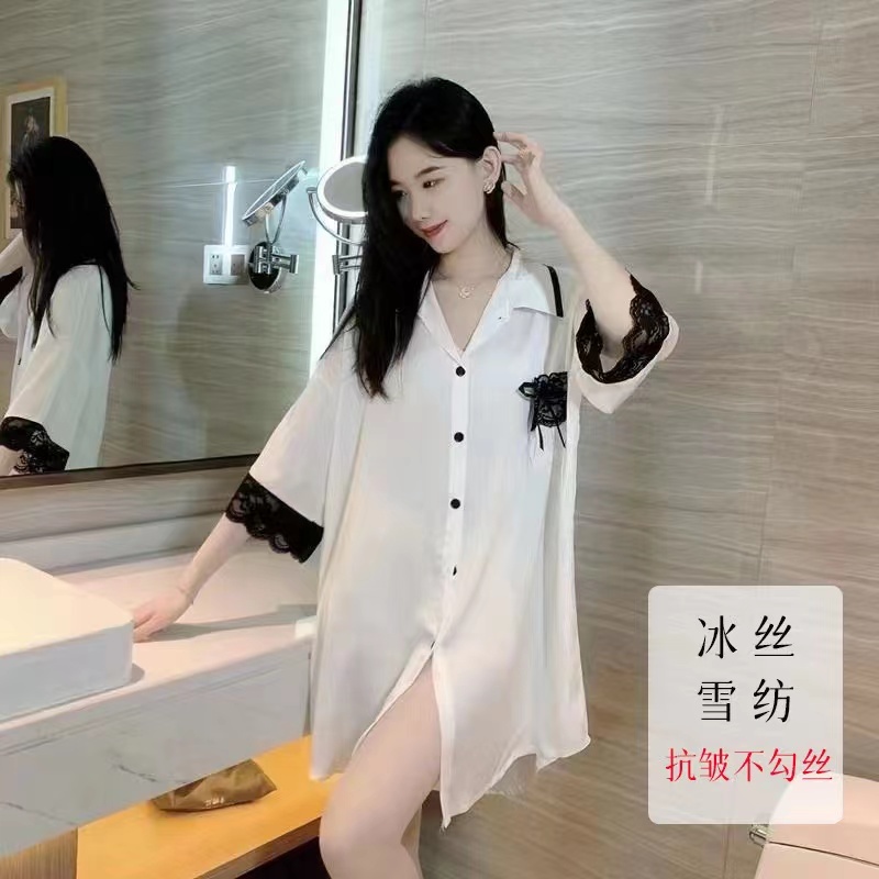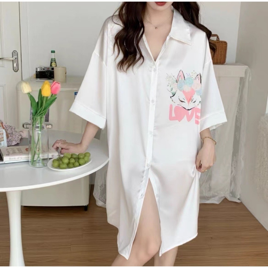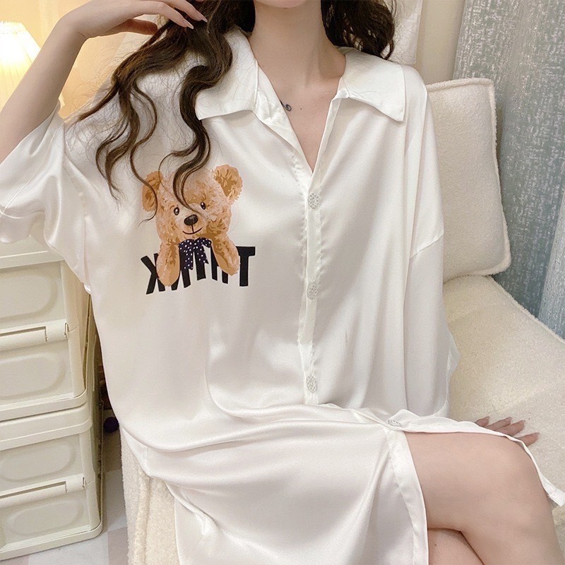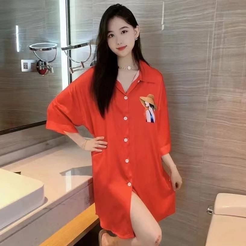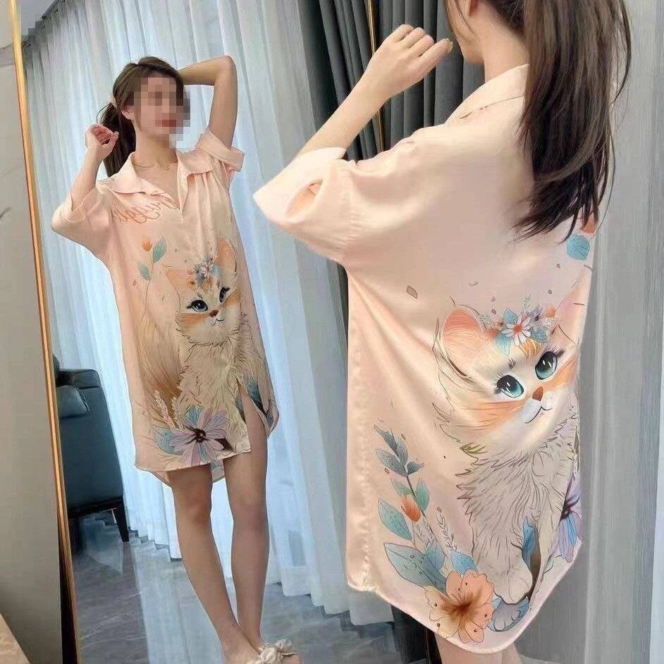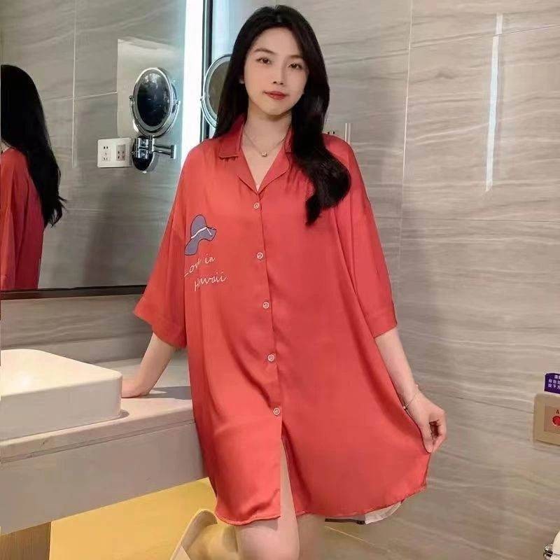(สินค้าพร้อมส่งในไทย) ชุดนอนกระโปรง เดรสงานผ้าไหมอิตาลี่ พลัสไซส์ สไตล์เกาหลี แฟชั่น