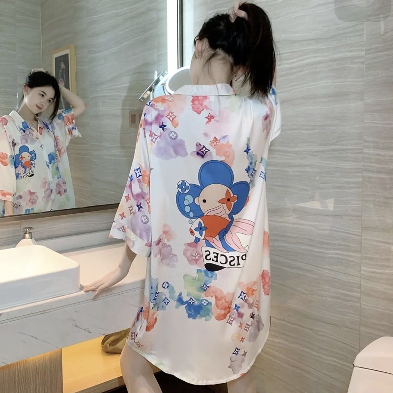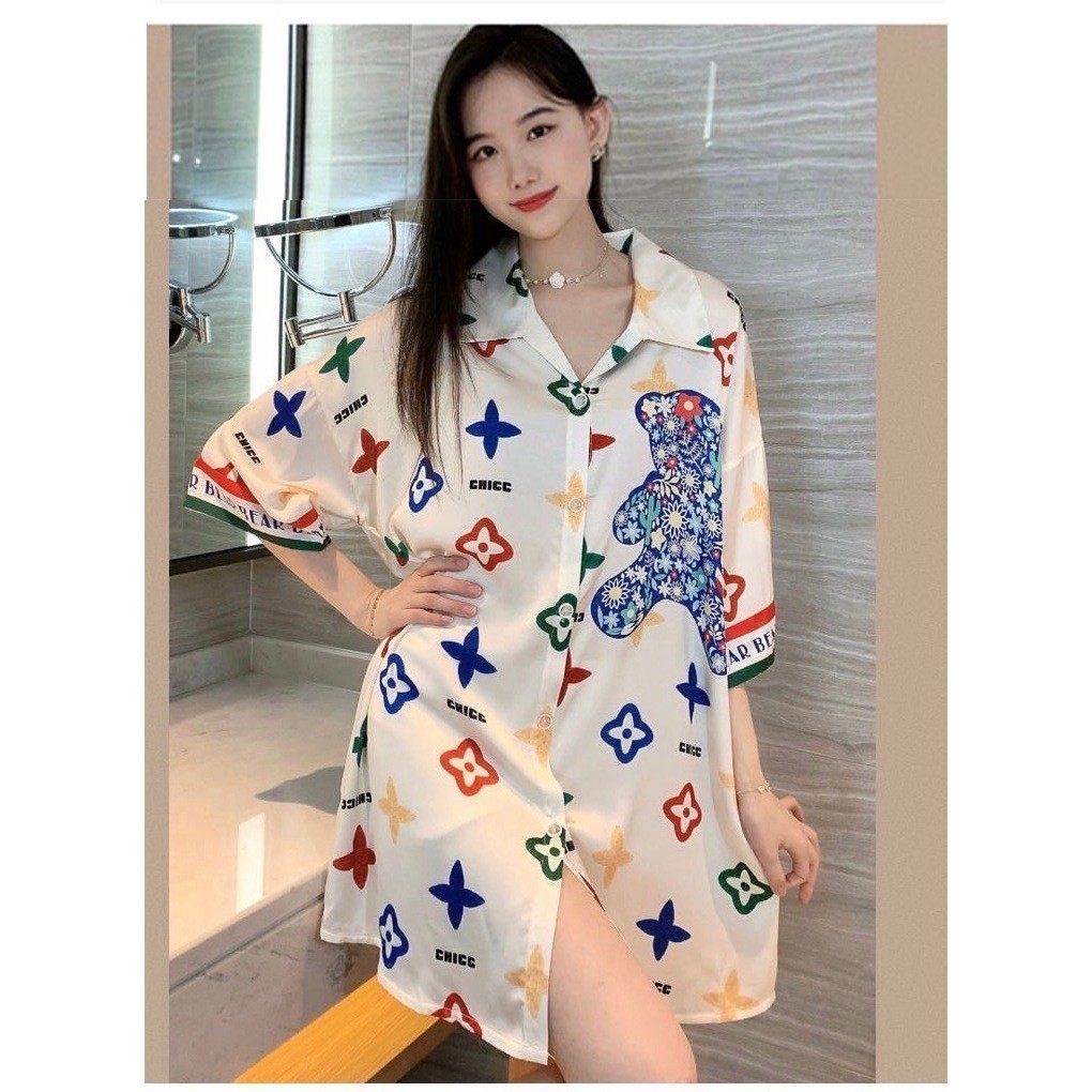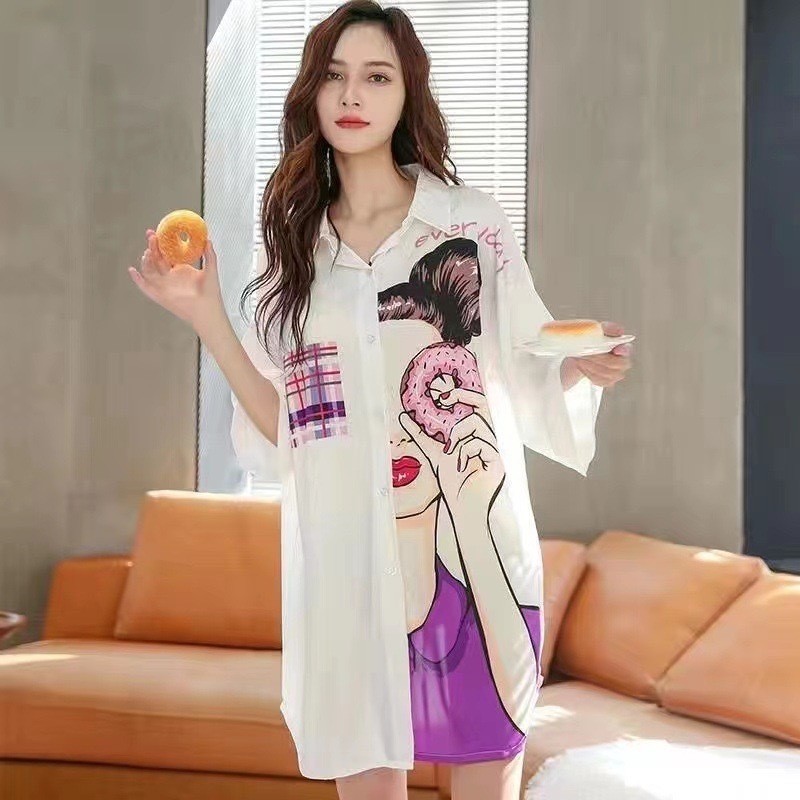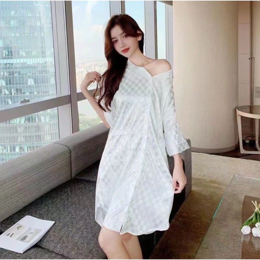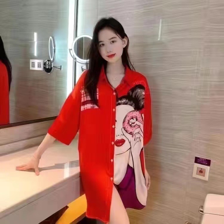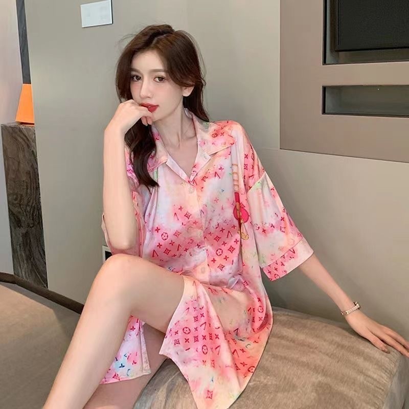 (สินค้าพร้อมส่งในไทย) ชุดนอนกระโปรง เดรสงานผ้าไหมอิตาลี่ พลัสไซส์ สไตล์เกาหลี แฟชั่น
