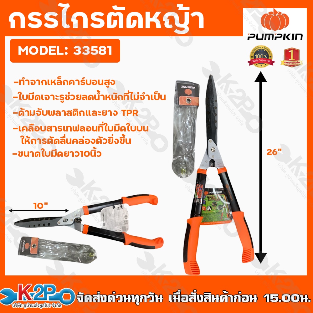 PUMPKIN กรรไกรตัดหญ้า26นิ้ว พัมคิน กรรไกร กรรไกรตัดหญ้าทรงตรง เครื่องมือทำสวน อุปกรณ์ตกแต่งสนามหญ้า ขนาดใบมีดยาว 10นิ้ว