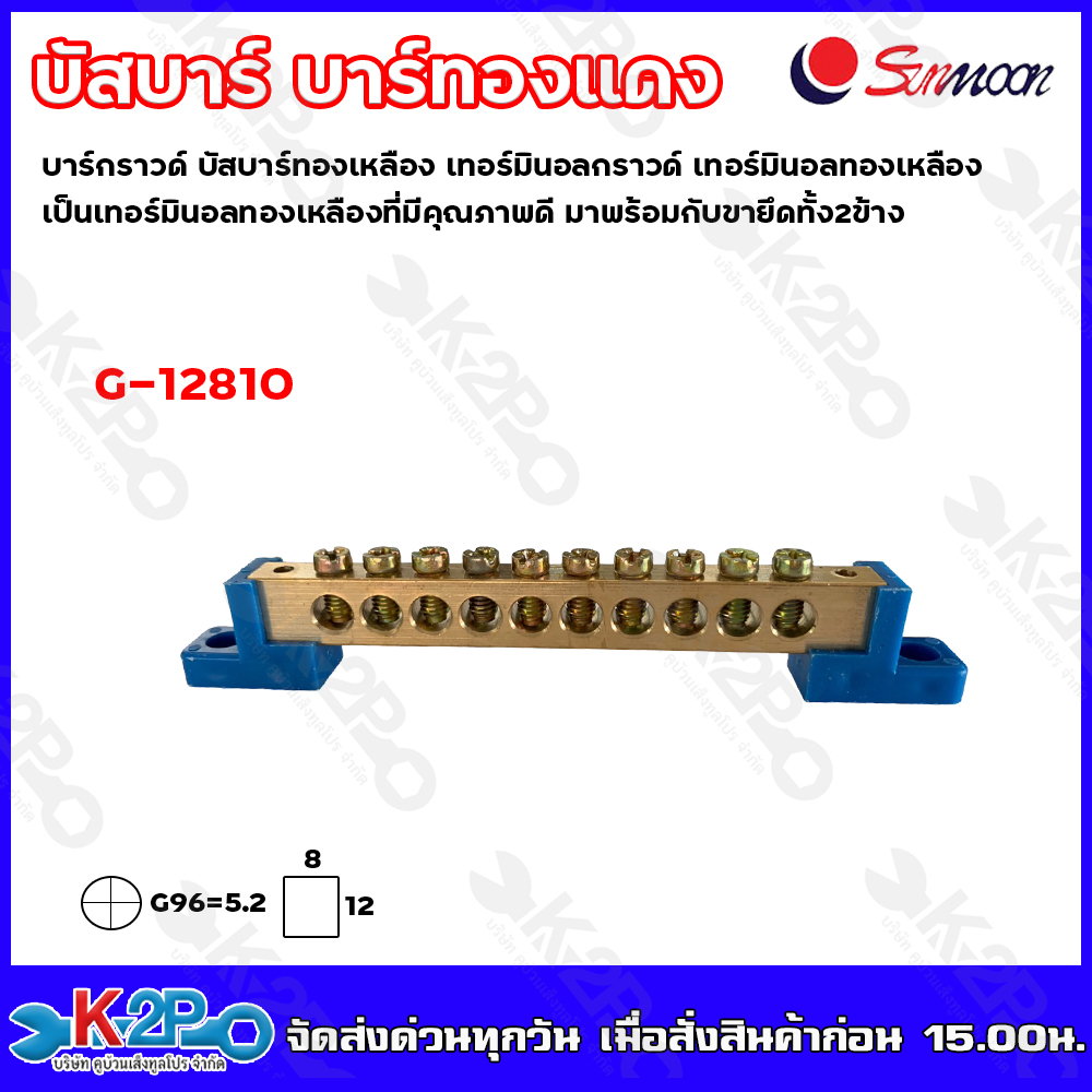 Sunmoon บัสบาร์ทองแดง บาร์กราวด์ GROUNDING BUS-BAR เทอร์มินอลกราวด์ G-12804 ถึง G-12812ทองเหลืองที่มีคุณภาพดี รับประกันค