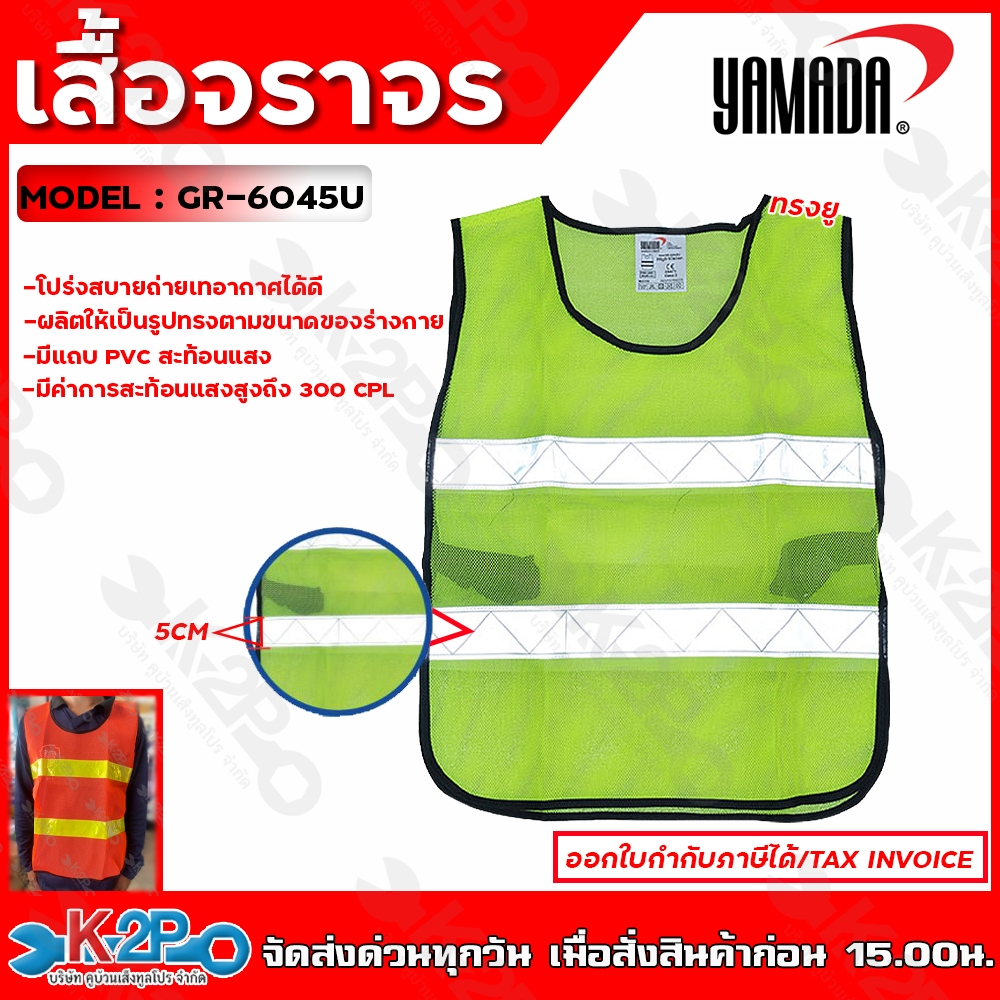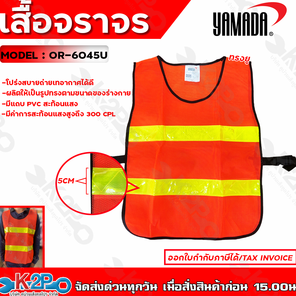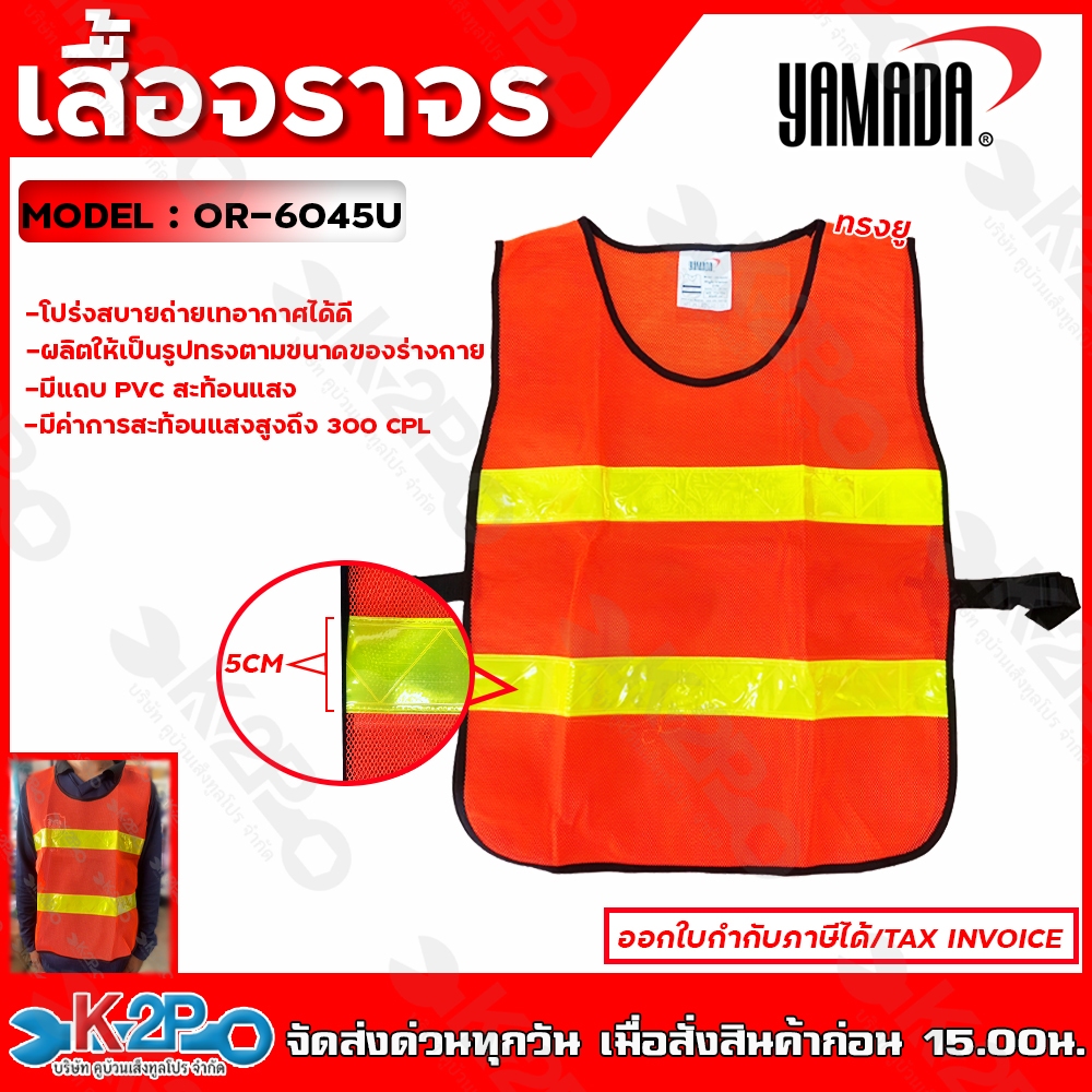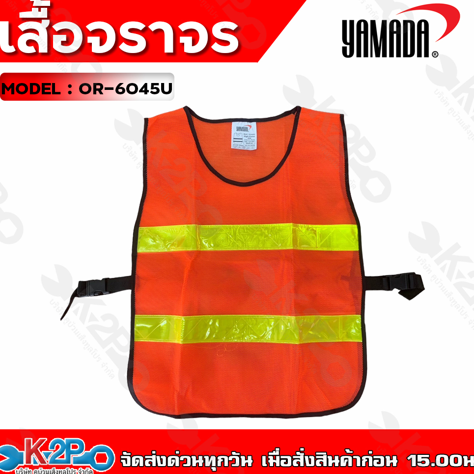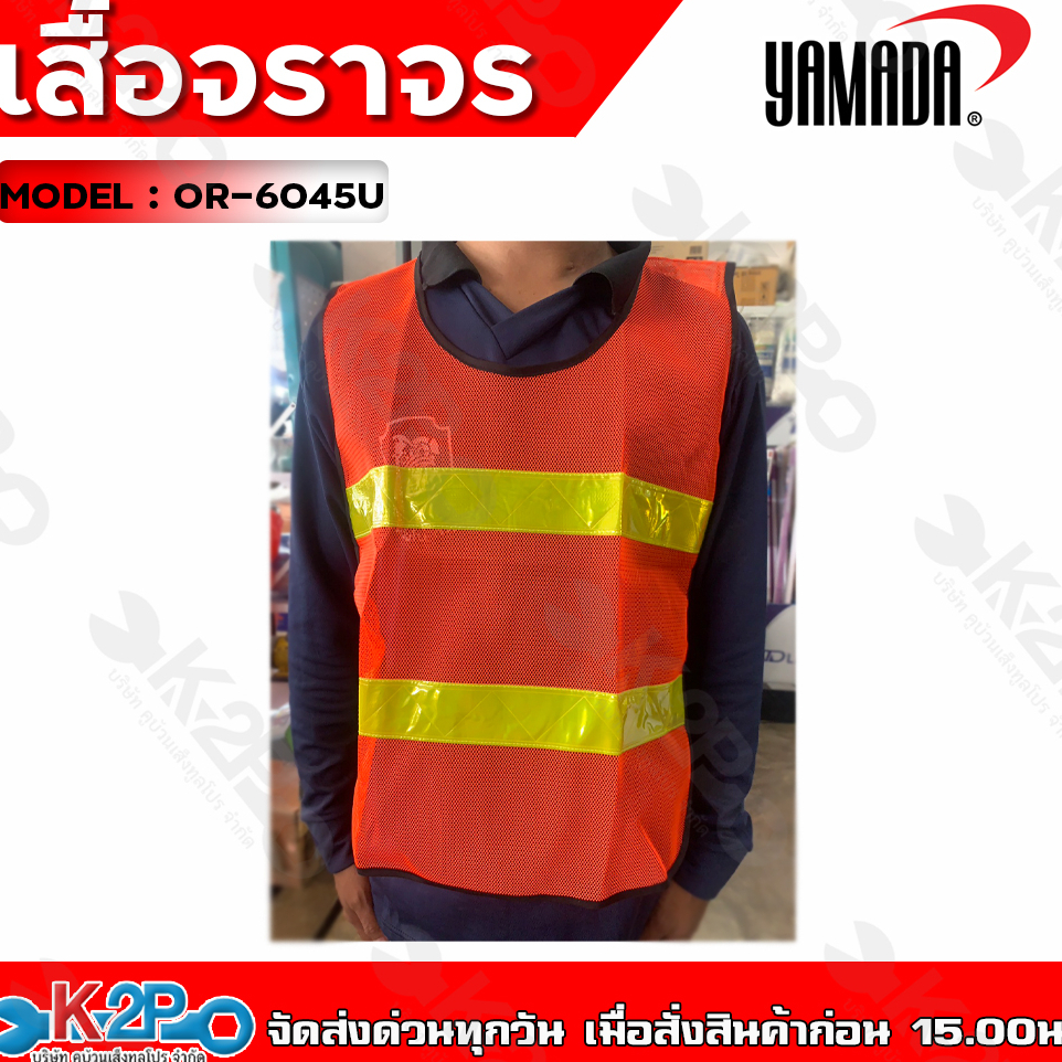 YAMADA เสื้อจราจร เสื้อกั๊ก เสื้อจราจรตาข่าย ทรงยู สีส้มแถบสีเหลือง สีเขียวแถบเงิน แถบสะท้อนแสงกว้าง 5 cm ยามาดะ ของแท้
