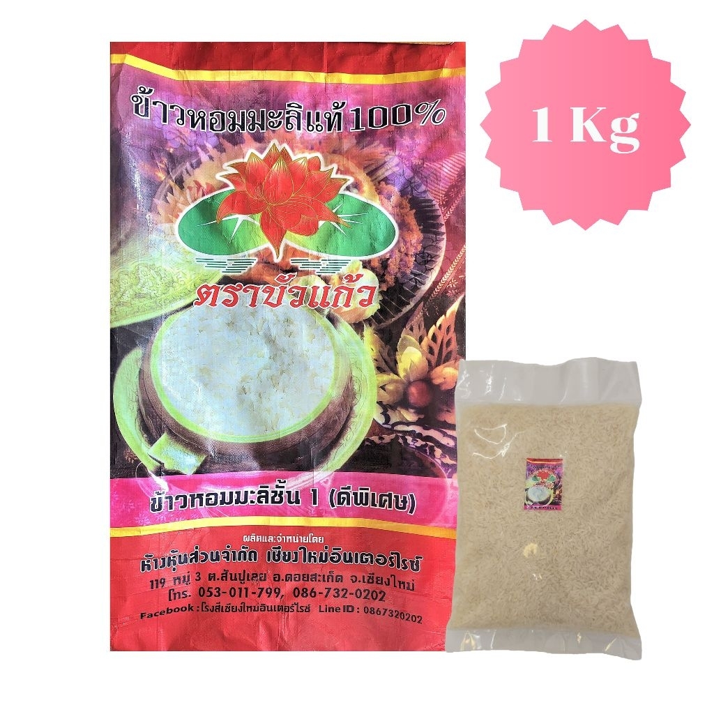 ข้าวหอมมะลิแท้ 100% ตราบัวแก้ว แบ่งขาย 1 กิโลกรัม