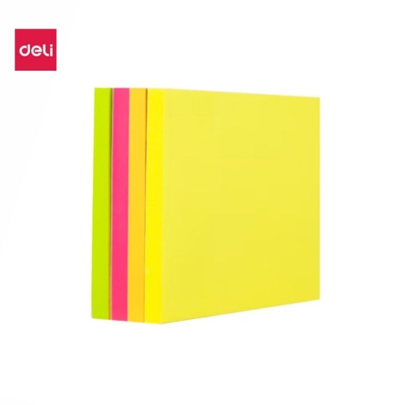 Deli กระดาษโน๊ตกาวในตัว 4 สี Stick Up A03030 ขนาด 3"×3" โทนนีออน (บรรจุ 100 แผ่น ต่อ 1 สี)
