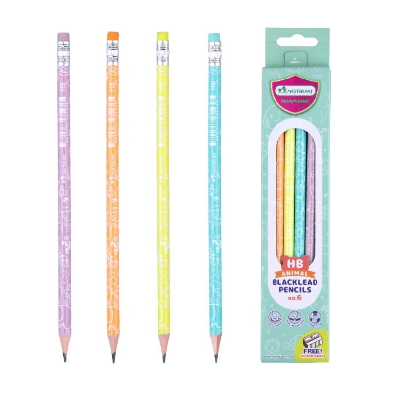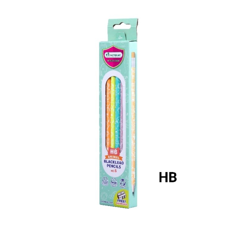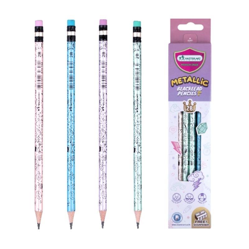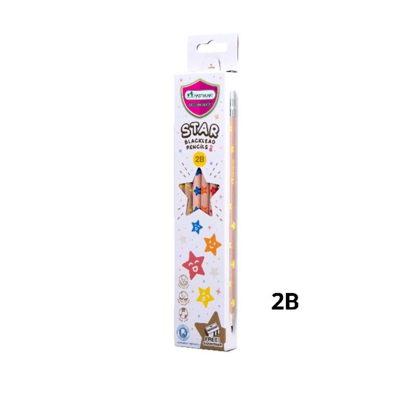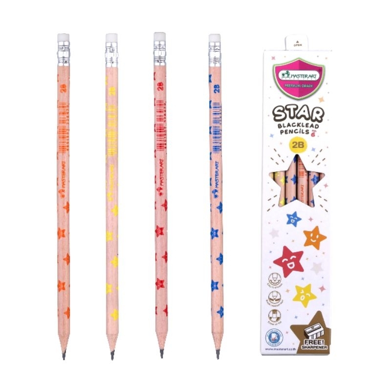 Master Art ดินสอไม้ดำ 12 แท่ง ความเข้ม HB, 2B รุ่น Metallic, Star, Animal แถม! กบเหลาดินสอในกล่อง (ราคาต่อ 1 กล่อง)