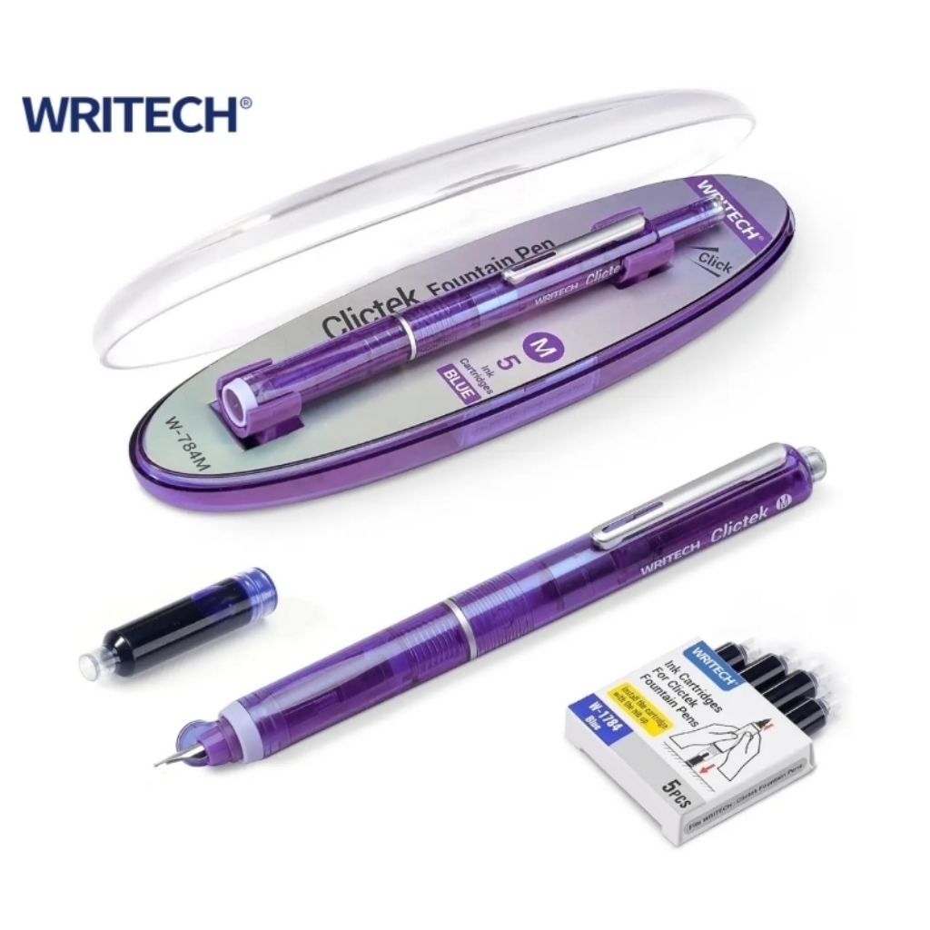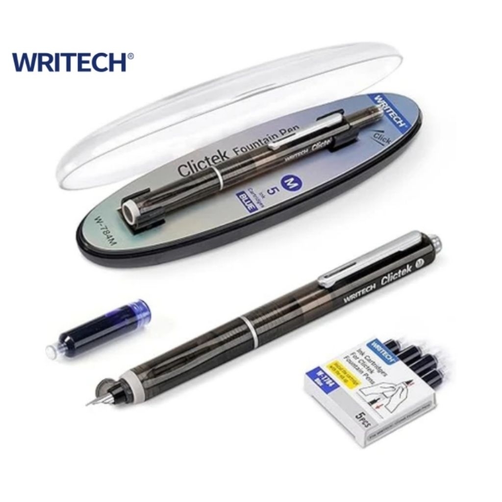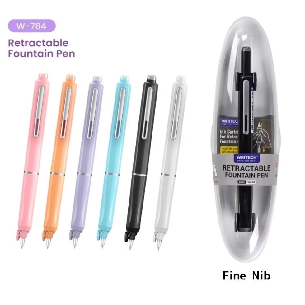 Writech ปากกาหมึกซึม รุ่น W-784 Clictek Retractable Fountain Pen ขนาด Fine nib/ Medium หมึกน้ำเงิน พร้อมไส้ปากกา 5 ชิ้น!