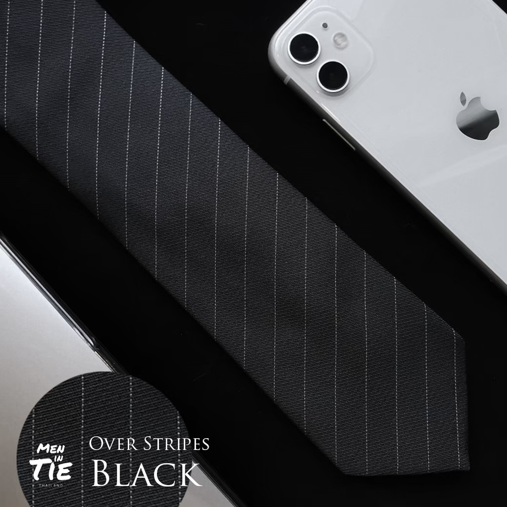 MEN IN TIE เนคไทแบบผูกเองลายทางสีน้ำเงิน ดำ น้ำตาล หน้ากว้าง 7 cm รุ่น Over Stripes