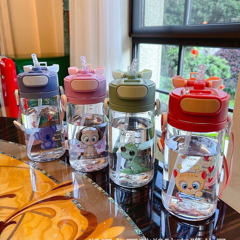 แก้วน้ำเด็ก มีสาย สีด้ามจับ ถ้วยหัดดื่มมีการ์ตูนน่ารัก สำหรับเด็กอายุ 6เดือนขึ้นไป ขนาด650ML