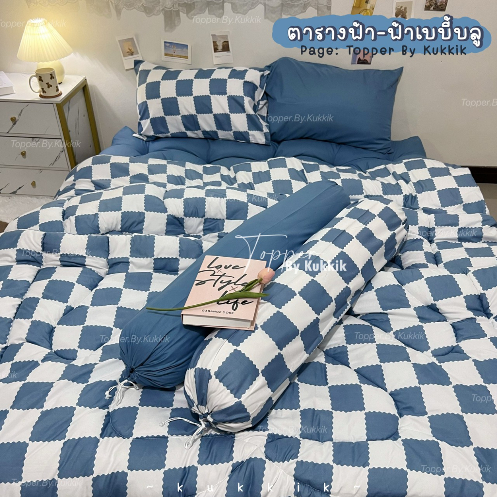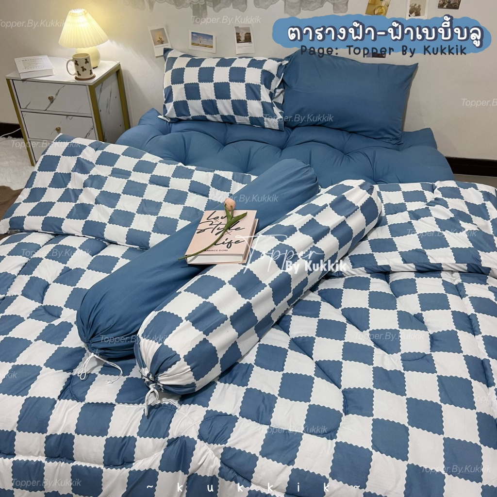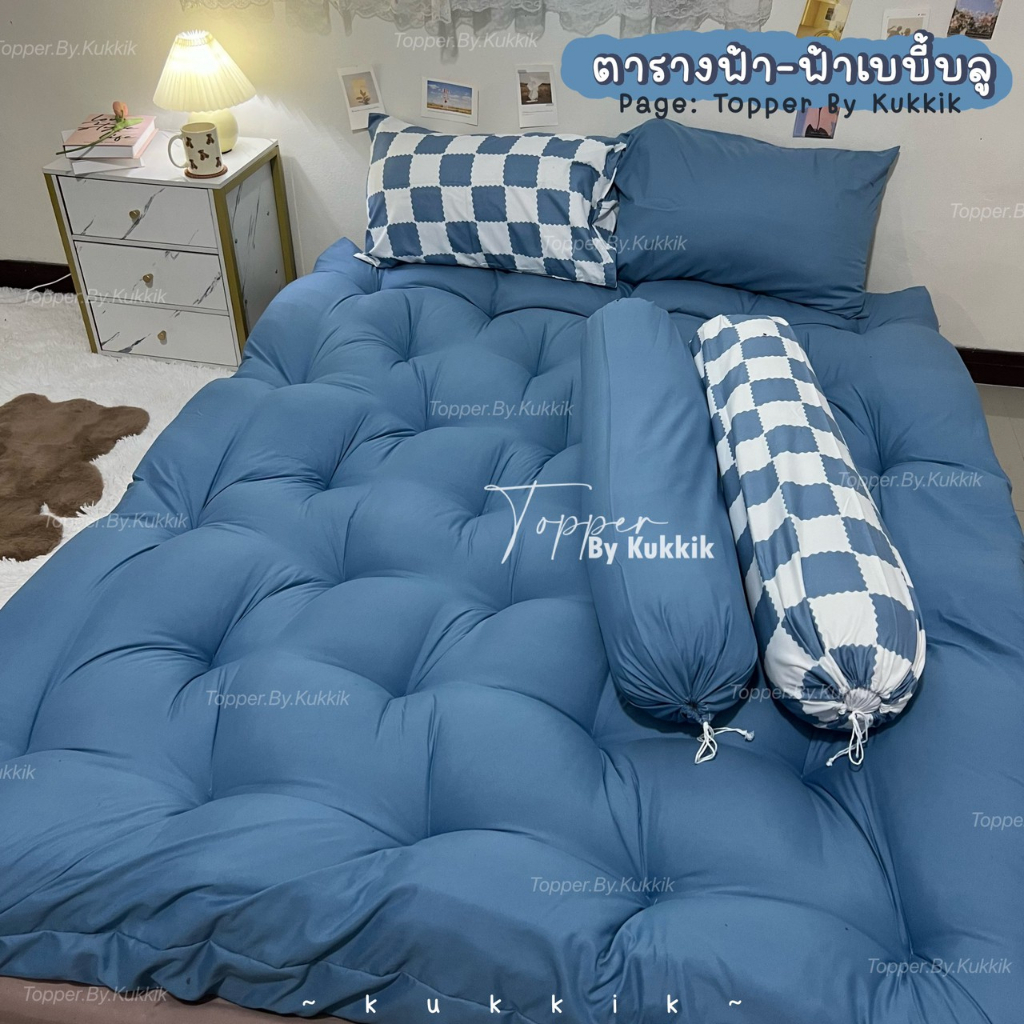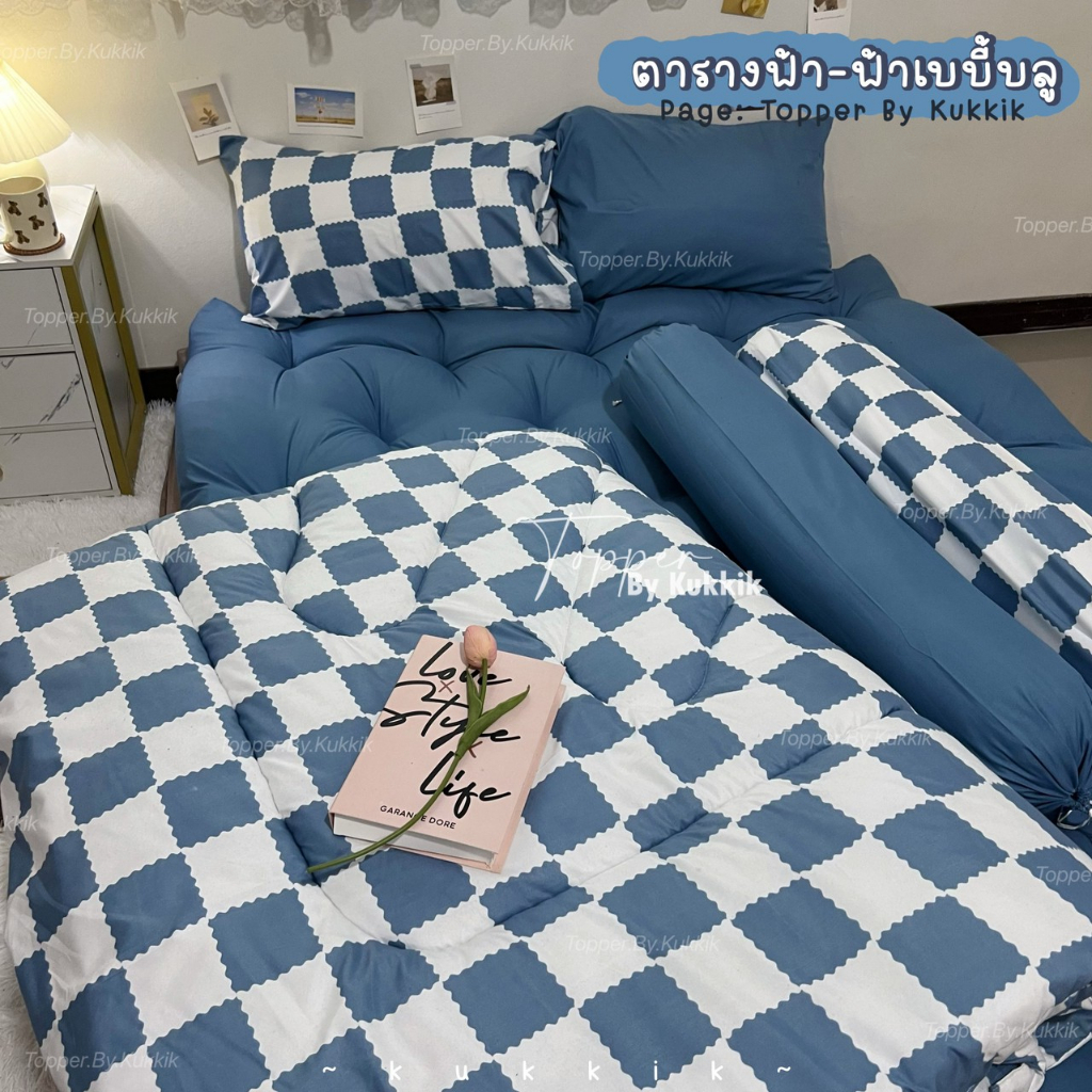 ตารางฟ้า-ฟ้าเบบี้บลู 💙" ชุดที่นอนท็อปเปอร์ ใย 4 ชั้น หนา 8 นิ้ว | ใย 3 ชั้น หนา 5 นิ้ว นอนสบาย หลับฟินๆ ไม่ปวดหลัง