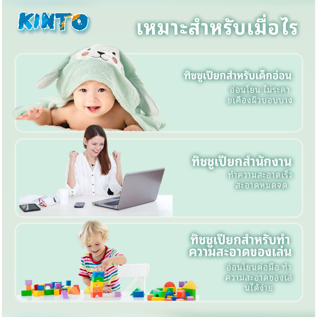 【NEW!!!】KINTO ทิชชู่เปียก ทิชชู่เปียกเด็ก บรรจุขนาดใหญ่ 12Pack - 960แผ่น ไม่มีแอลกอฮอล์ ทำความสะอาดง่าย