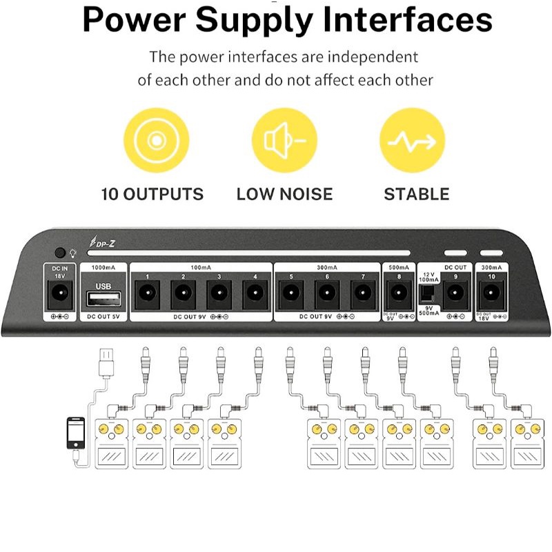DC PEDAL POWER SUPPLY CABLE สายจ่ายไฟแบบ MULTI CABLE (แบบหลายหัว) สามารถเลือกหัวจ่ายไฟได้ 3 -10 หัว