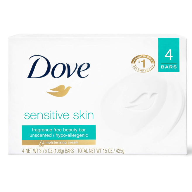 Dove Beauty Bar Sensitive Skin 106g. x 4 Bars โดฟ บิวตี้บาร์ เซนซิทีฟ สกิน สบู่ก้อน แพ็ค 4ก้อน