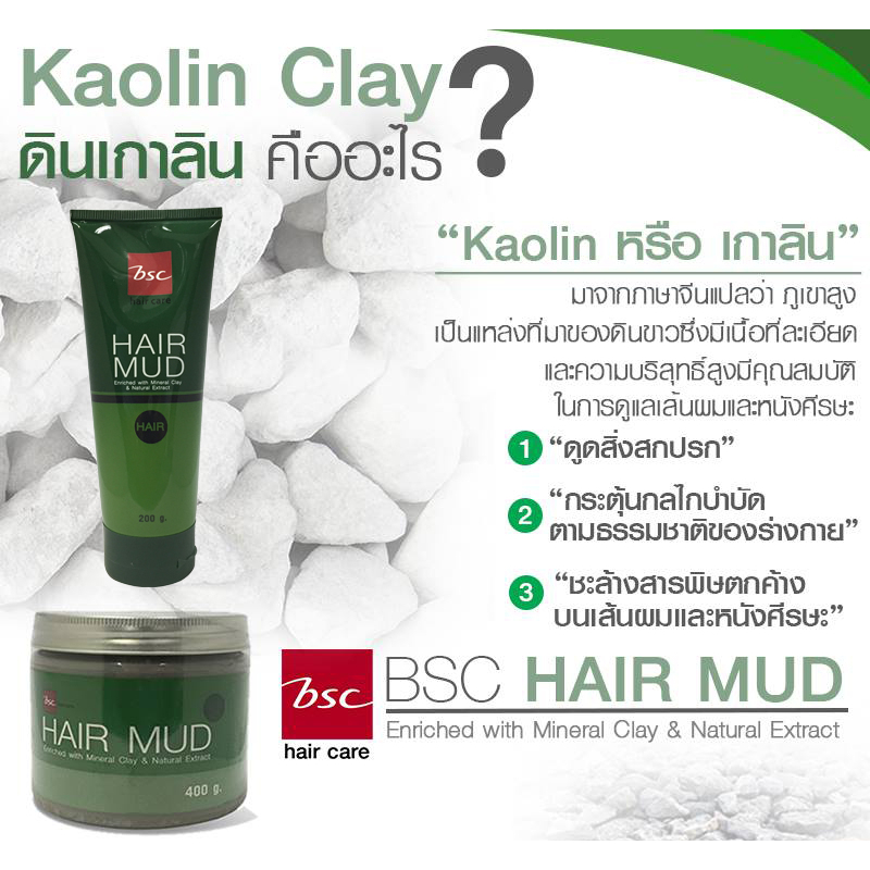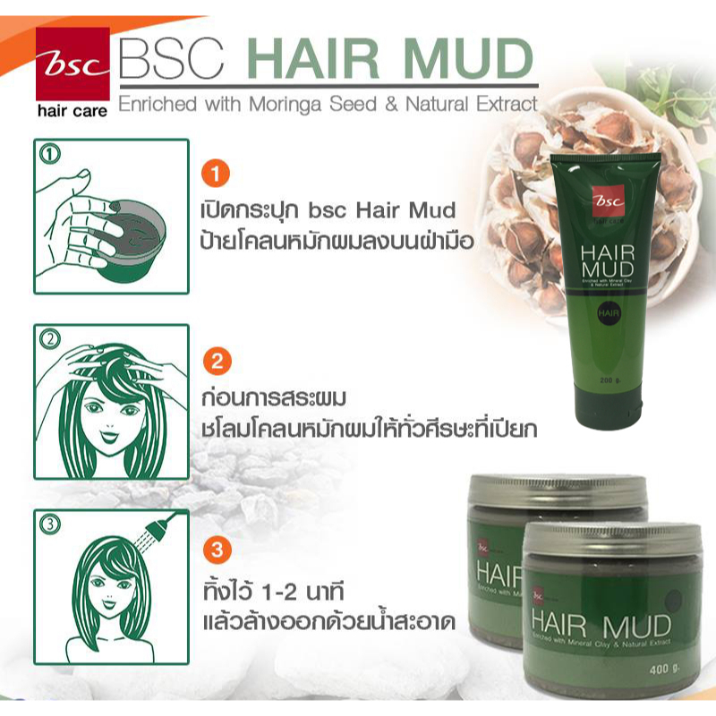 🚞 BSC Hair Mud บีเอสซี แฮร์ มัด โคลนหมักผม ล้างสารเคมีผม บำรุงเส้นผม ให้แข็งแรง มีน้ำหนัก กลิ่นหอม 400g (bsc ปุกเขียว)