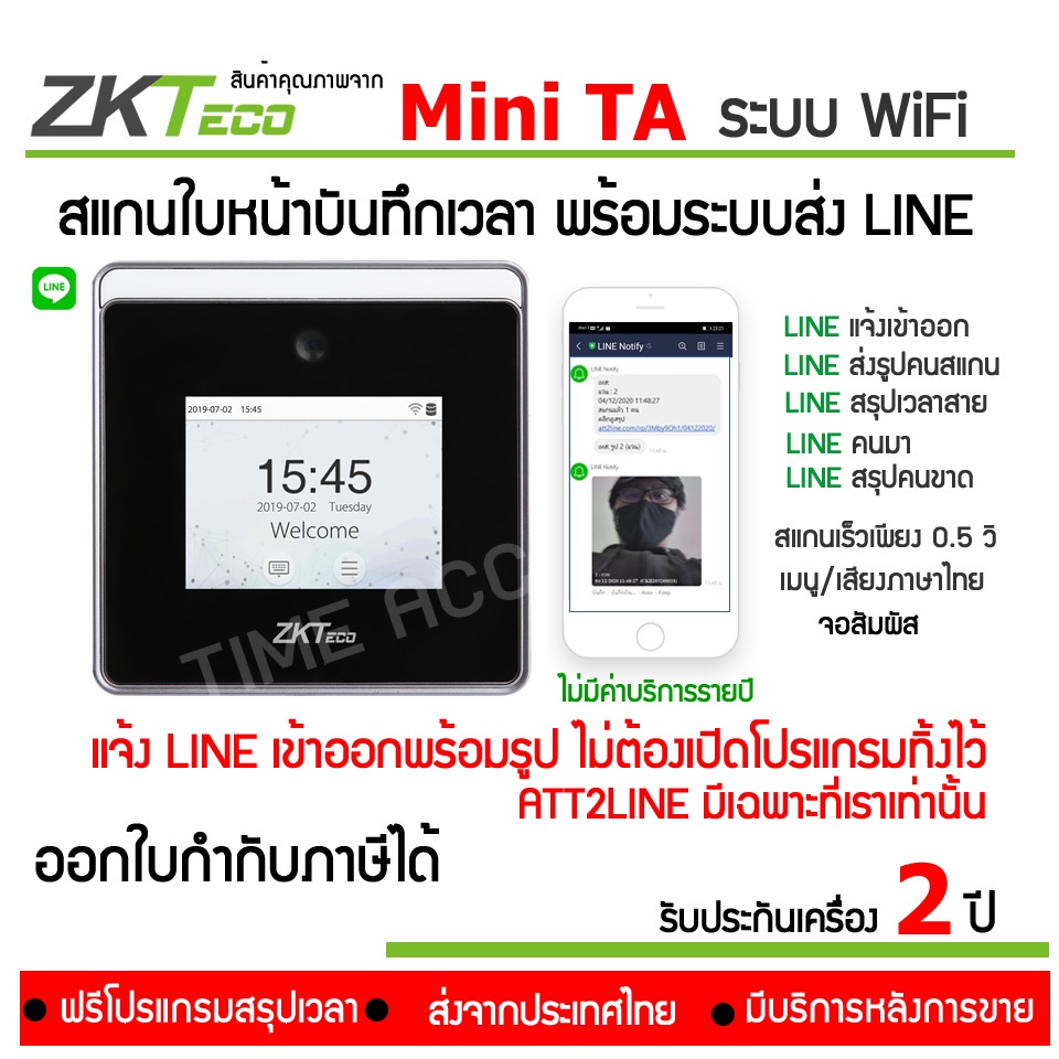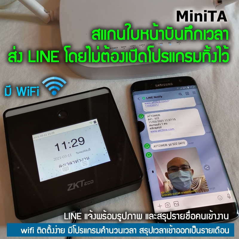 สแกนหน้าส่ง LINE จากเครื่องไม่ต้องเปิดคอมพิเตอร์ทิ้งไว้ Mini-TA ติดตั้งง่ายแบบ WiFi มีสรุปคนเข้า มาสาย ขาด