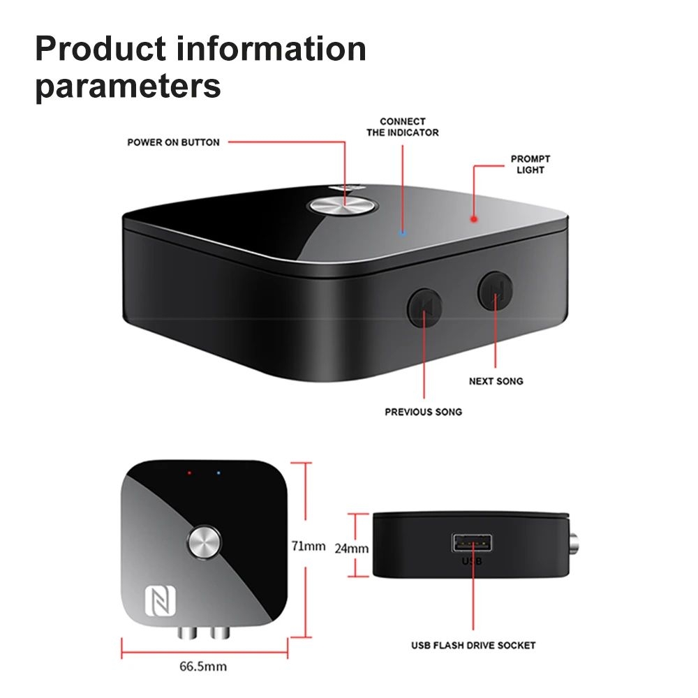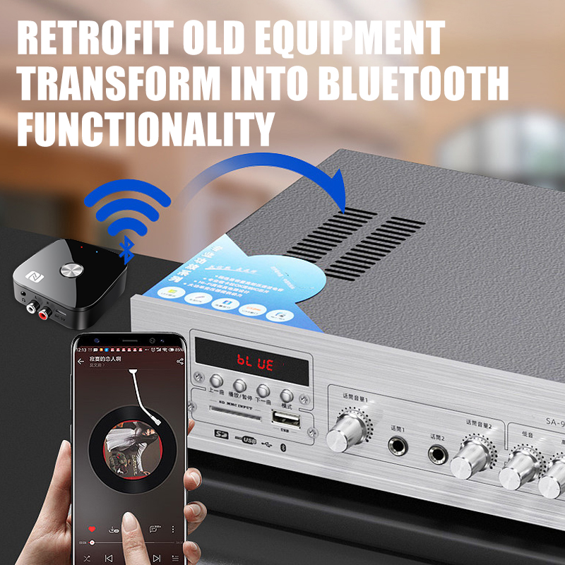 บลูทูธ 5.4 เครื่องรับสัญญาณเสียง RCA 3.5 มม.AUX USB สเตอริโอ NFC BT 5.0 อะแดปเตอร์ไร้สาย U-Disk พร้อมไมโครโฟนสําหรับรถยนต์ชุดลําโพงเครื่องขยายเสียง