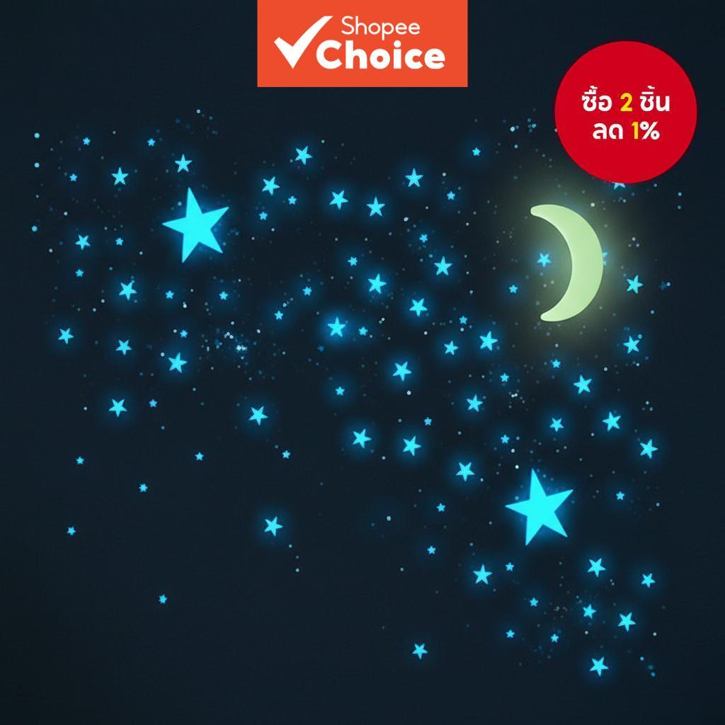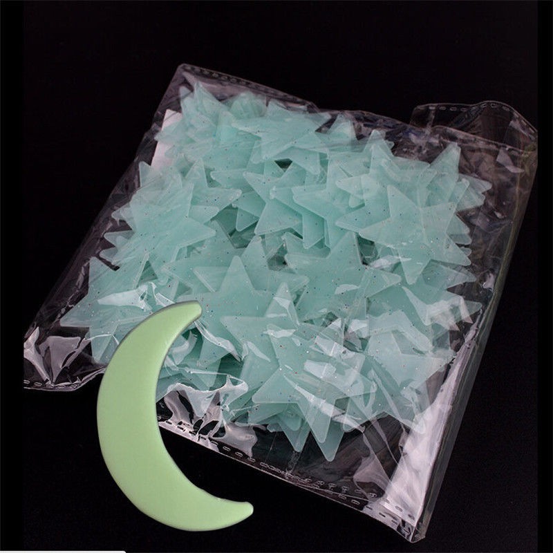 สติ๊กเกอร์ติดผนังรูปดาวและดวงจันทร์ 3D เรืองแสง สําหรับตกแต่งผนังยามค่ําคืน