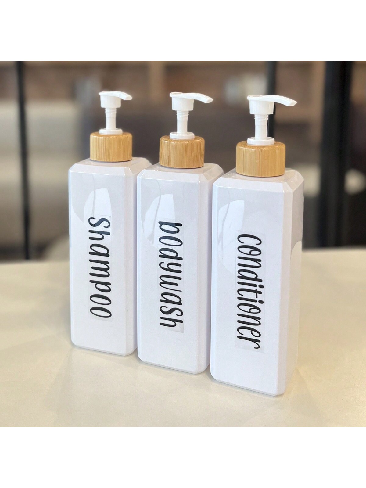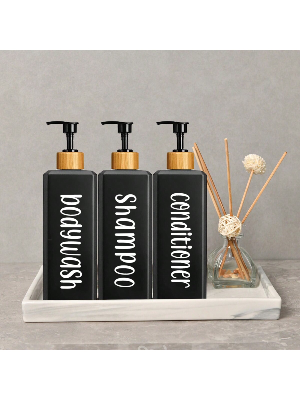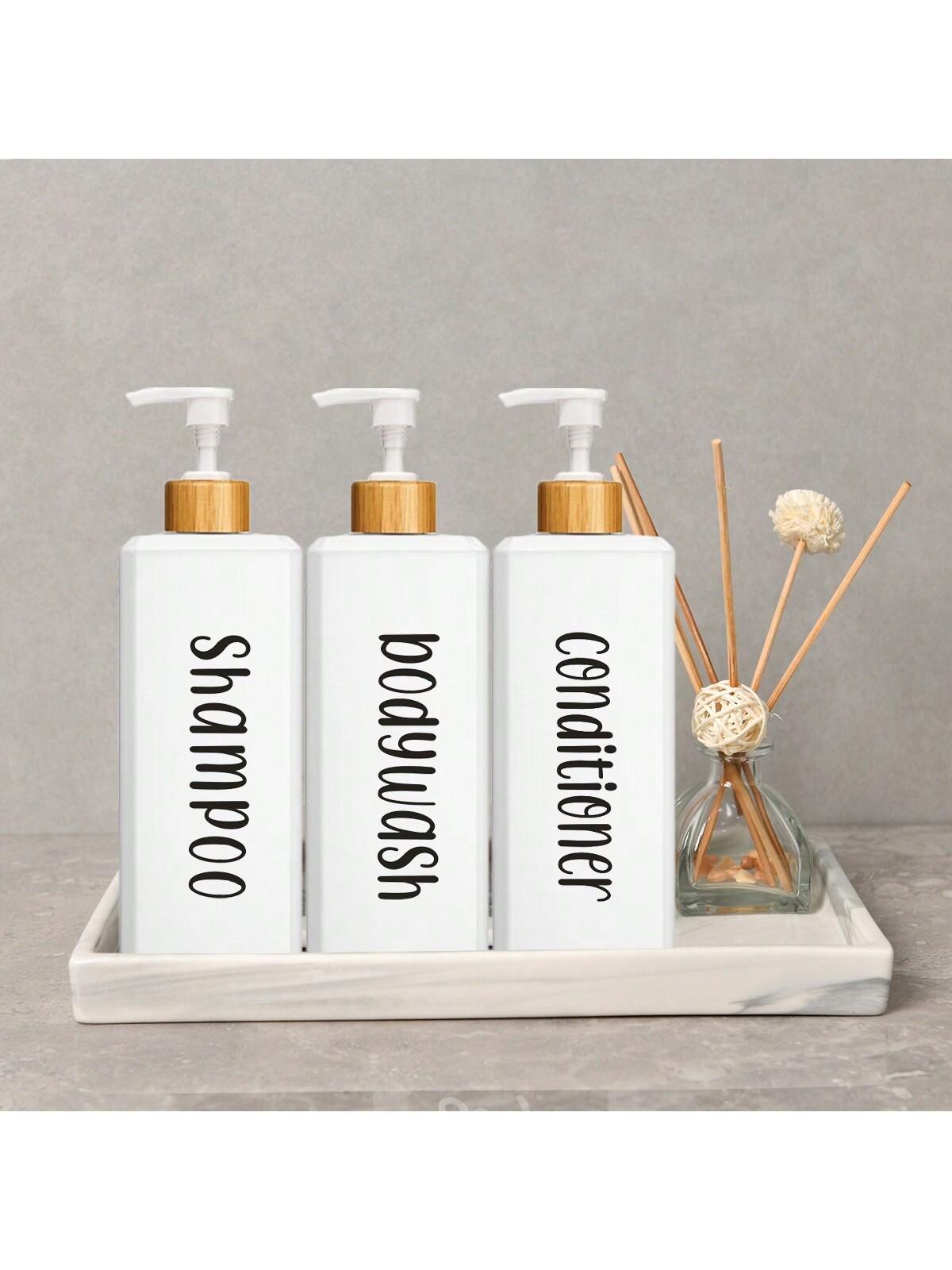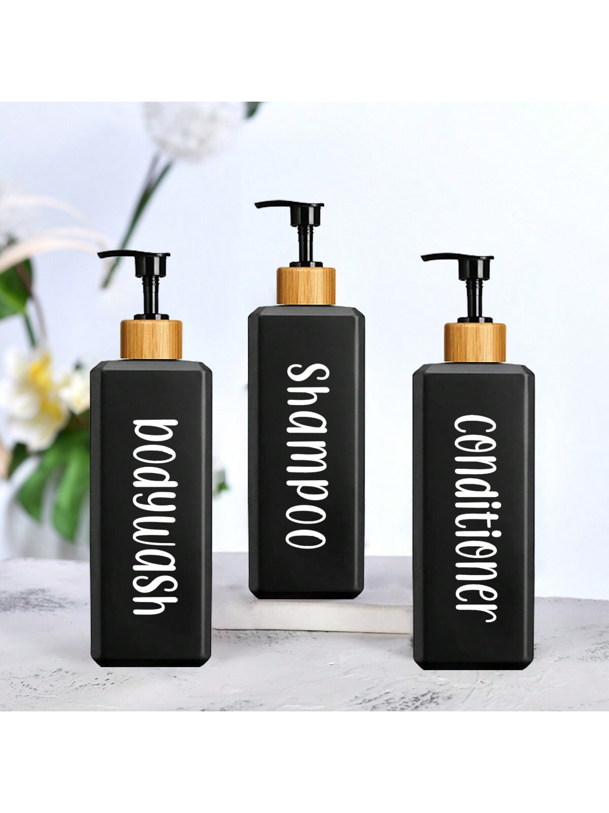 ตู้ทําสบู่ชุด3ชิ้น500มิลลิลิตรขวดสี่เหลี่ยมแชมพูครีมนวดผมร่างกายล้างบ้านห้องน้ํา