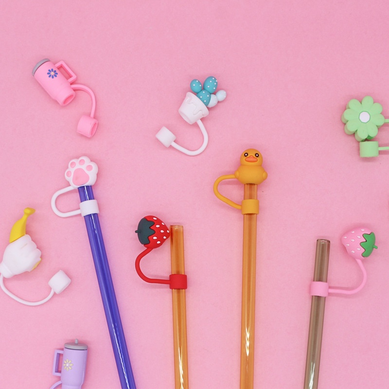 หมวกฟางซิลิโคน 10 มม. ผ้าคลุมกันฝุ่นเกรดอาหารแบบนุ่มสําหรับหลอดดื่มแบบใช้ซ้ําได้