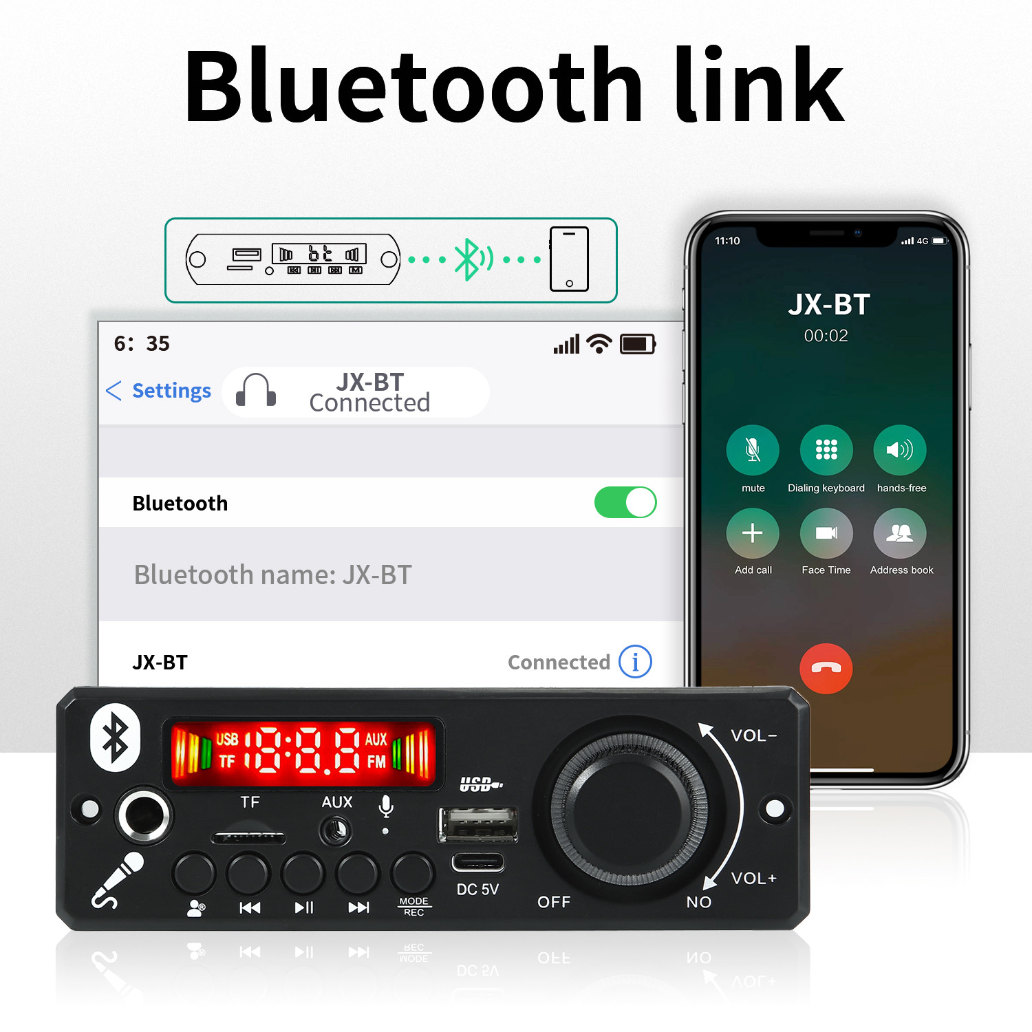 6W เครื่องขยายเสียง DC 5V MP3 WMA บลูทูธ 5.0 โมดูลเสียง USB TF วิทยุไร้สาย FM ตัวรับสัญญาณ MP3 เครื่องเล่น