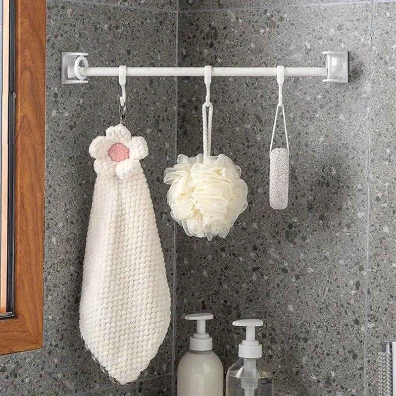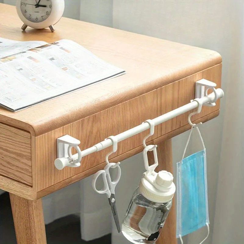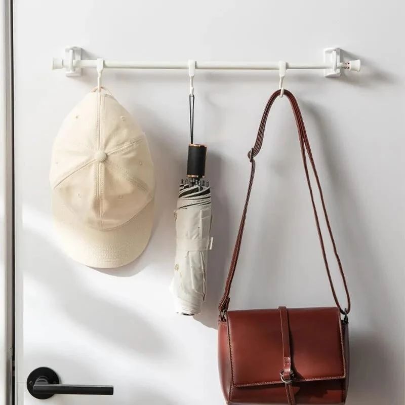 ขอแขวนผ้าและราวม่านแบบหมุน 2 ชิ้น ไม่ต้องเจาะ ปรับความยาวได้ หมุนได้ 360°