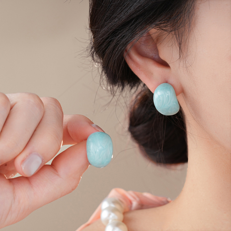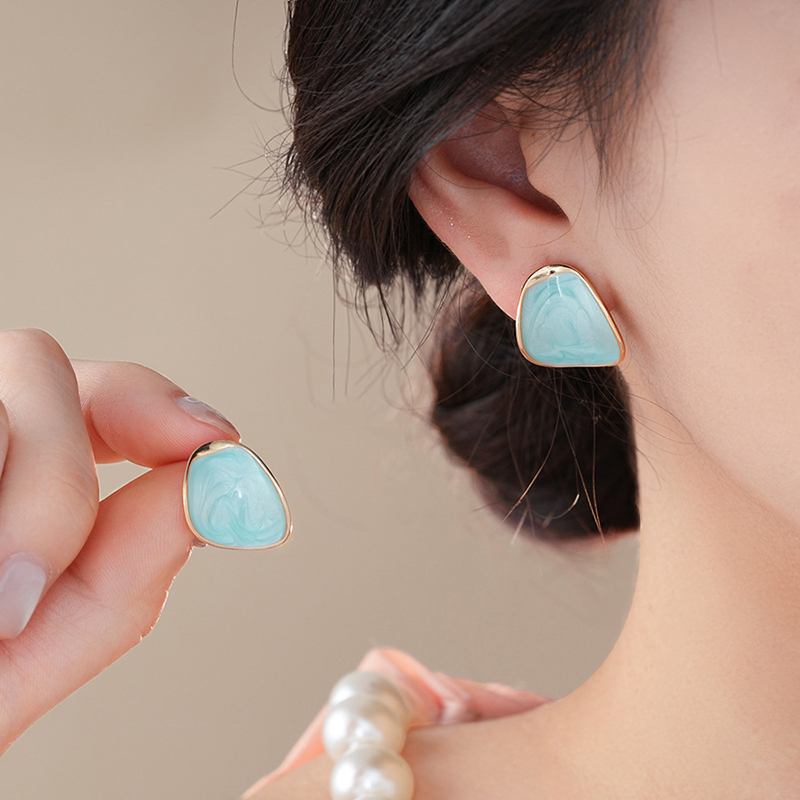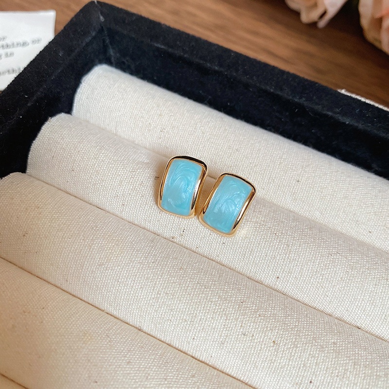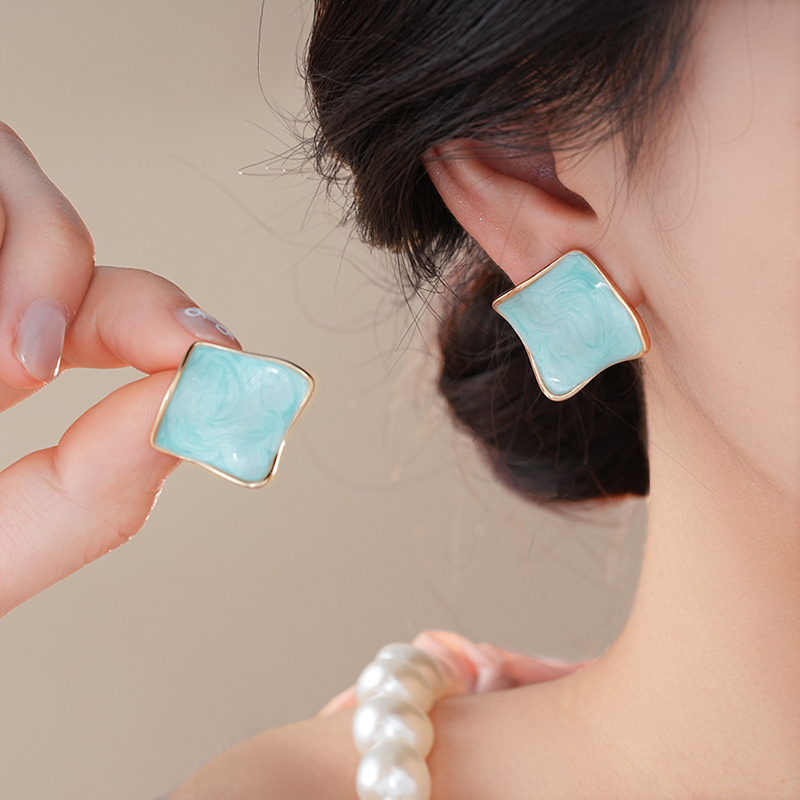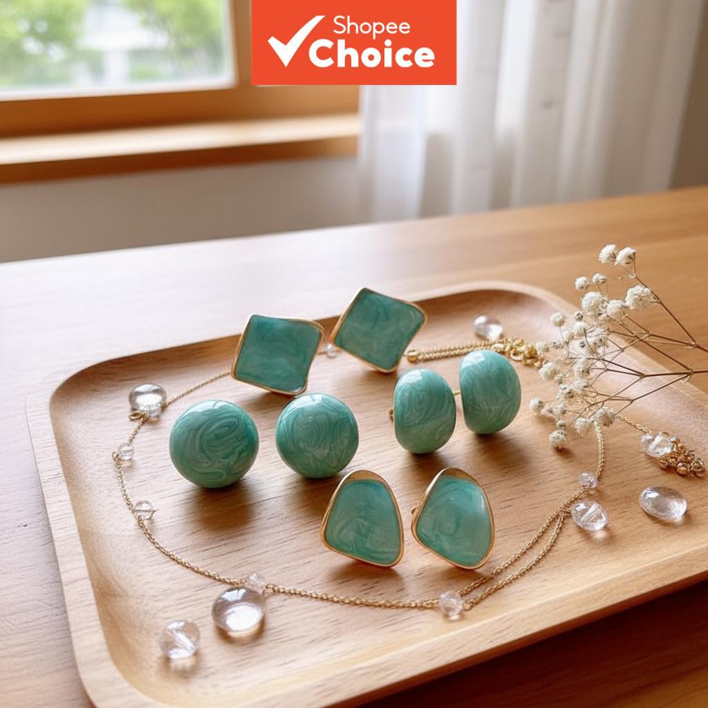 ต่างหูเงินชุบสีเขียวมิ้นท์ แบบต่างหูสตั๊ด น้ําหนักเบา สําหรับผู้หญิงใส่ได้ทุกวัน