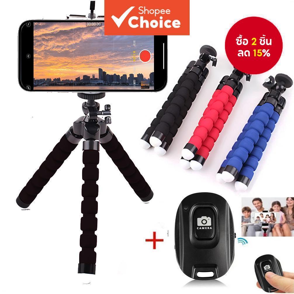 ที่วางโทรศัพท์ขาตั้งกล้องปลาหมึกยักษ์แบบยืดหยุ่นพร้อมรีโมทบลูทูธสําหรับโทรศัพท์ทุกรุ่น